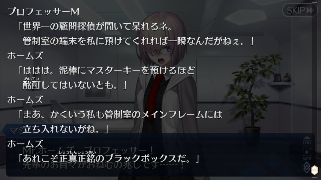 ガチな推理小説じゃないんだから、ホームズ・アラフィフ・マシュパートでの助言には素直に従っとけってテンプレ更新されてないね