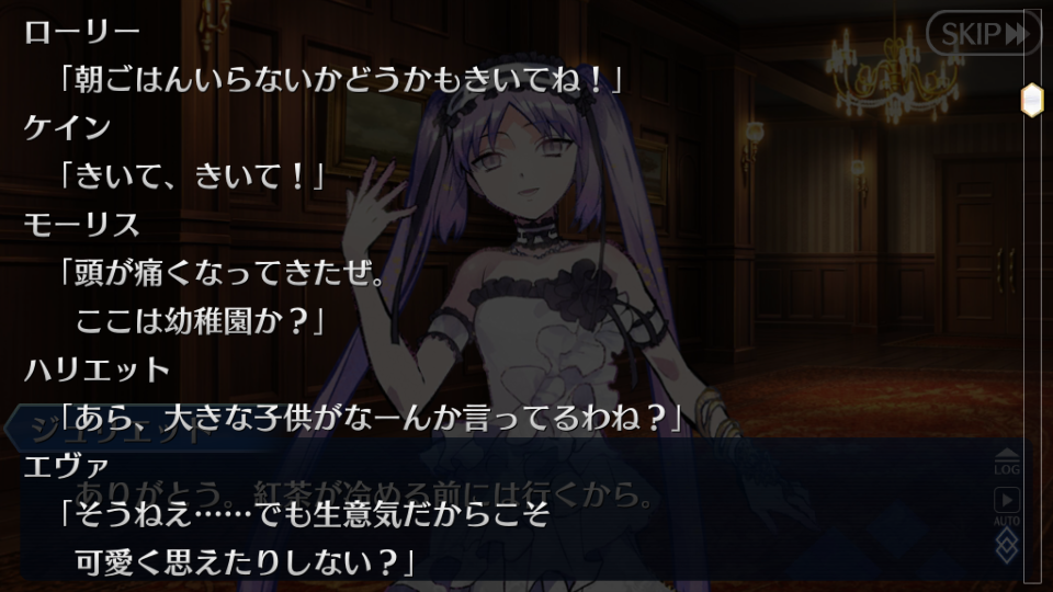 今回のイベも本編に全く関係ないように見えて重要な情報がボンと出てきやがったやっぱりハリエットじゃなくてエヴァが双子の妹なんじゃないかというのが濃厚になってきたが、