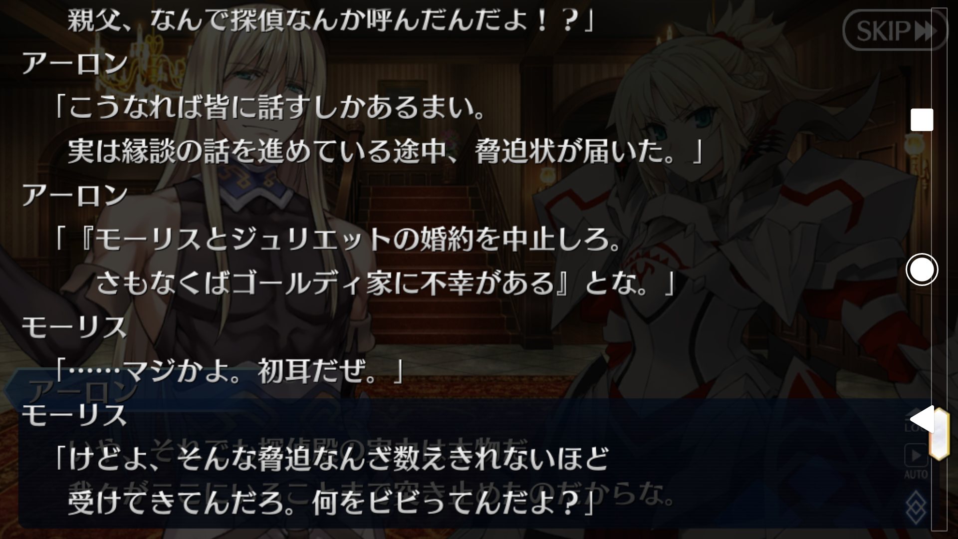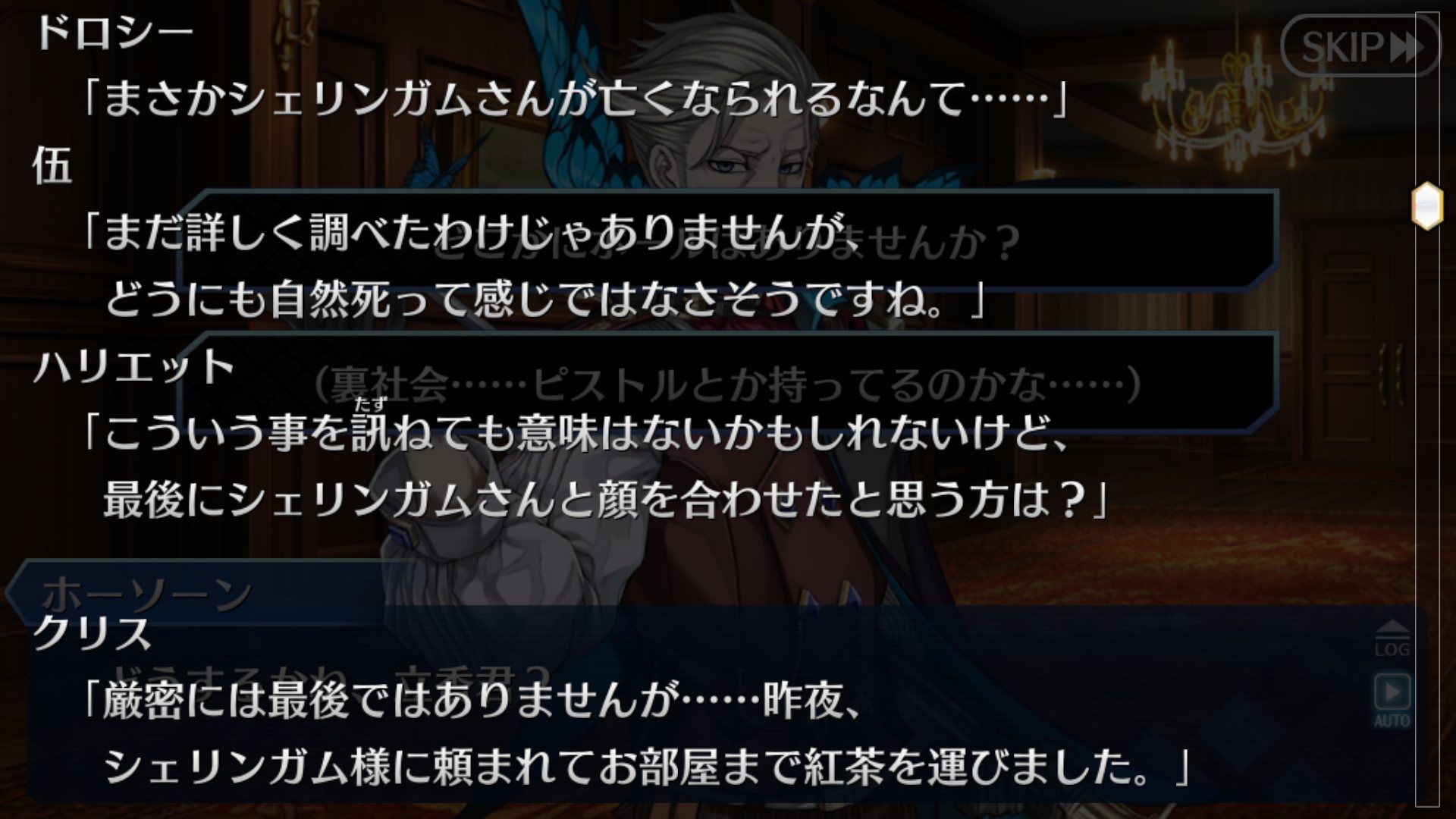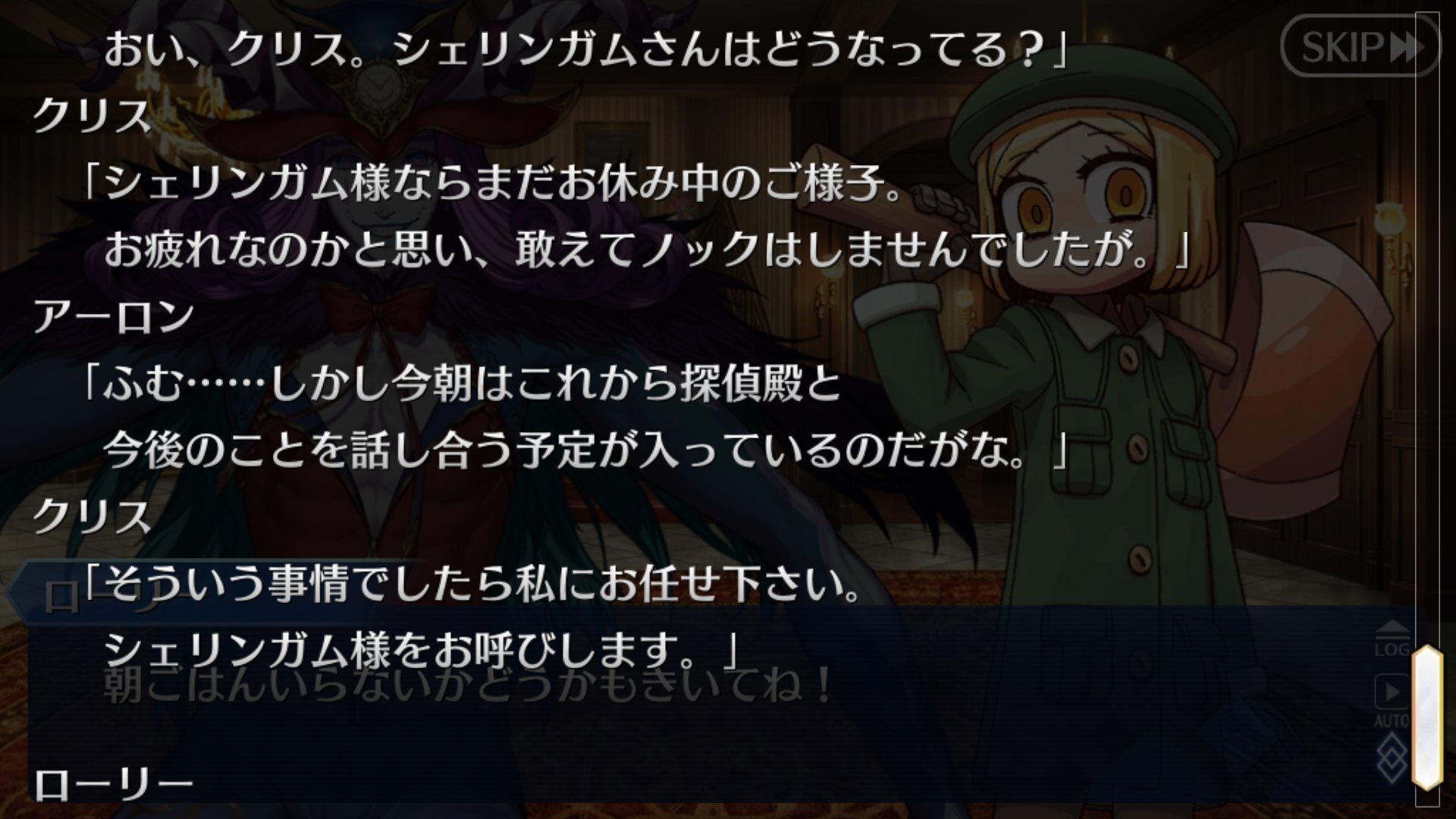 ぐだに料理が美味しかったねと言われても「あ…うん、そうね。」と上の空、その直後シェリンガムが訪問。