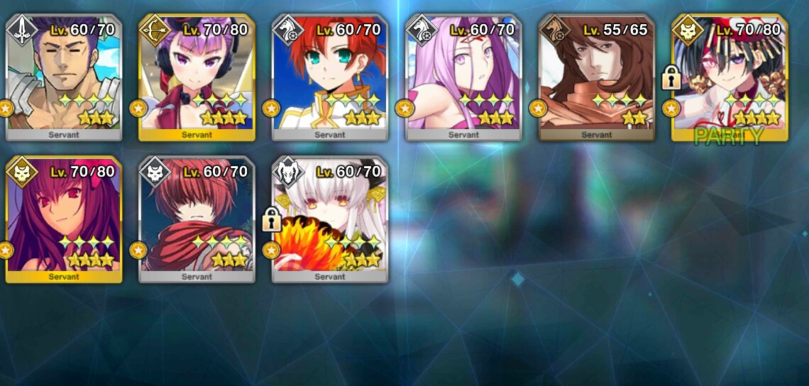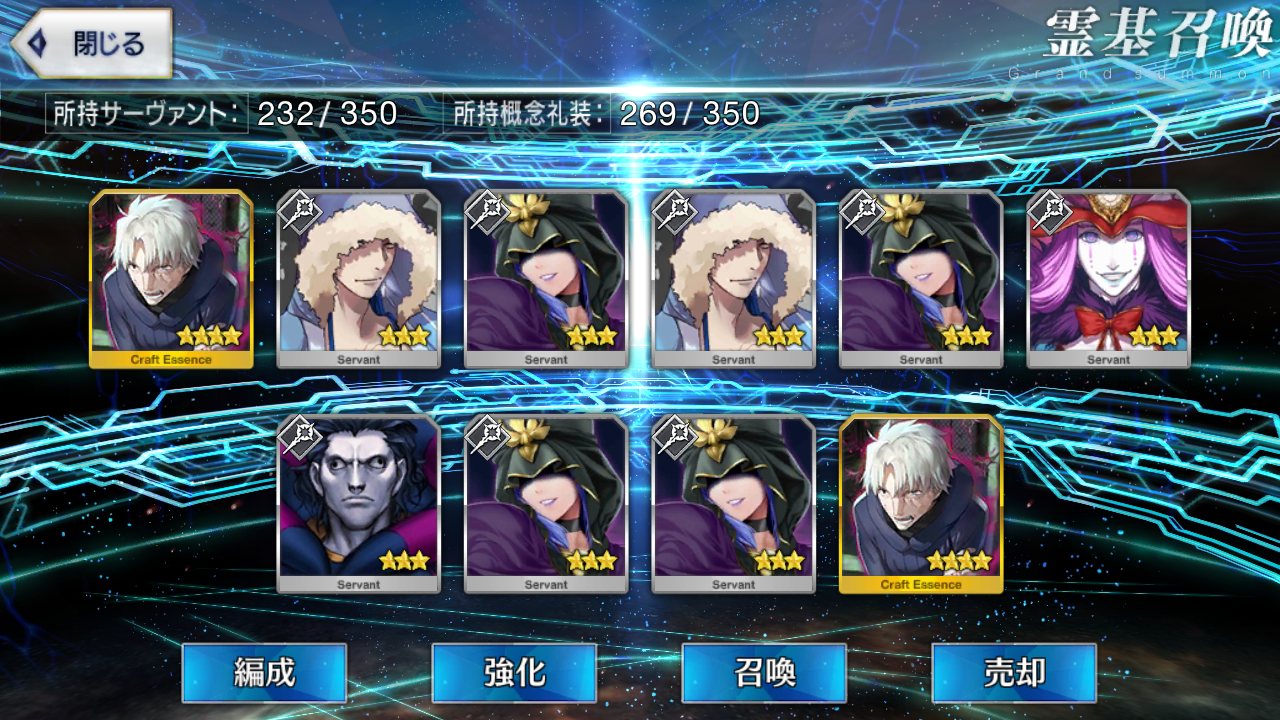 フレ80人近くいても鯖貸してもらってるはだいたい一緒、しかも大抵は孔明/マーリンだわ…
