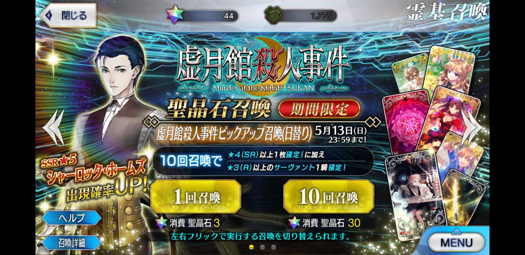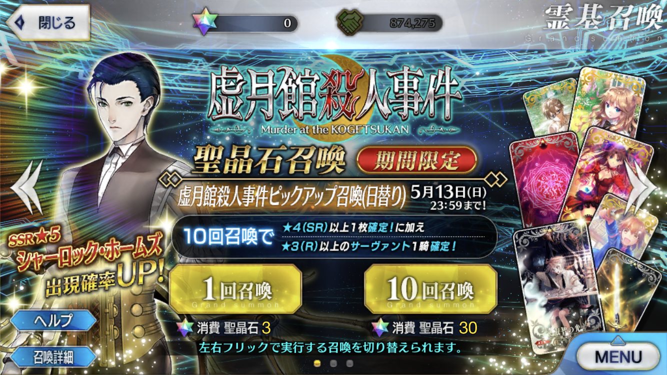 ホームズほしいけど、戦力はもう十分すぎるほど揃ってるから、また数万かけて新鯖引いてゼロから育成するのはツラい。