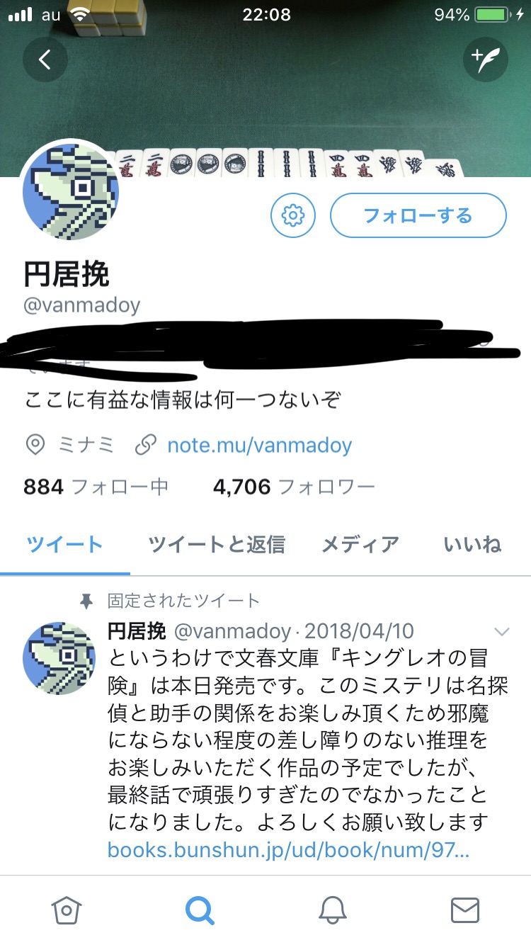 推理とは微塵も関係ないけど思い浮かんだから言いたかったんだ。参考までにノックス抵触問題、新規参入の円居さんは「ノックスに挑めば面白くなると思っているのは頭が痛くなる」「ノーノックスでフィニッシュ」とかツイートしてるので無いんじゃないかなと