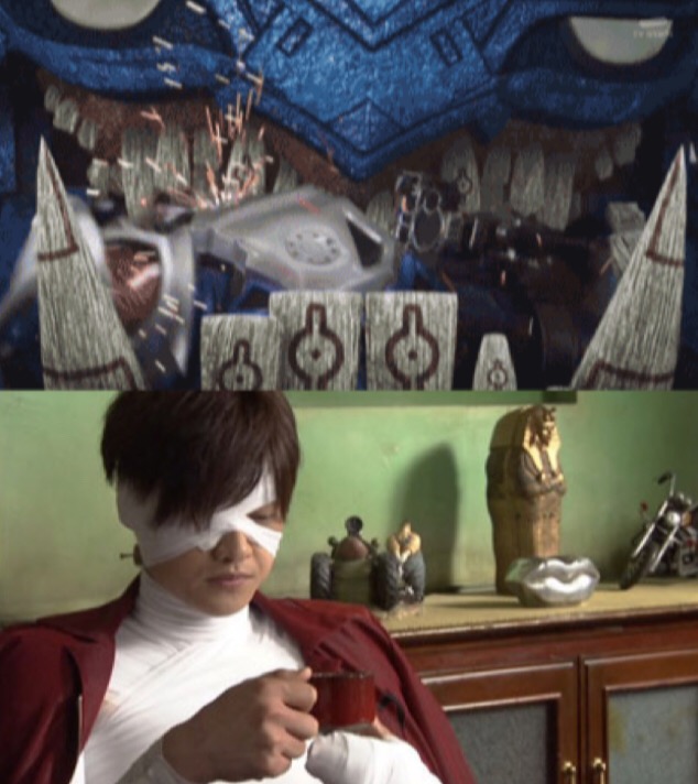 冒頭で忍者軍団と戦って気絶、VR世界へ→現実に帰還後にゲムデウスマキナと戦い、他のライダー共々吹っ飛ばされて変身解除→数時間に及ぶまどかの手術→その後ゲムデウスマキナと戦っているスナイプとレーザーを救援に現れる上の方でもう別の人が書いてたか...