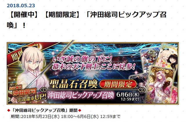 アイテム交換所の沖田さんの一人称沖田さんなセリフが可愛すぎてピックアップ引いてしまいそう……ダメだ……この石はいずれ来る狂スロピックとガレスちゃんのためのもの……ダメだ……