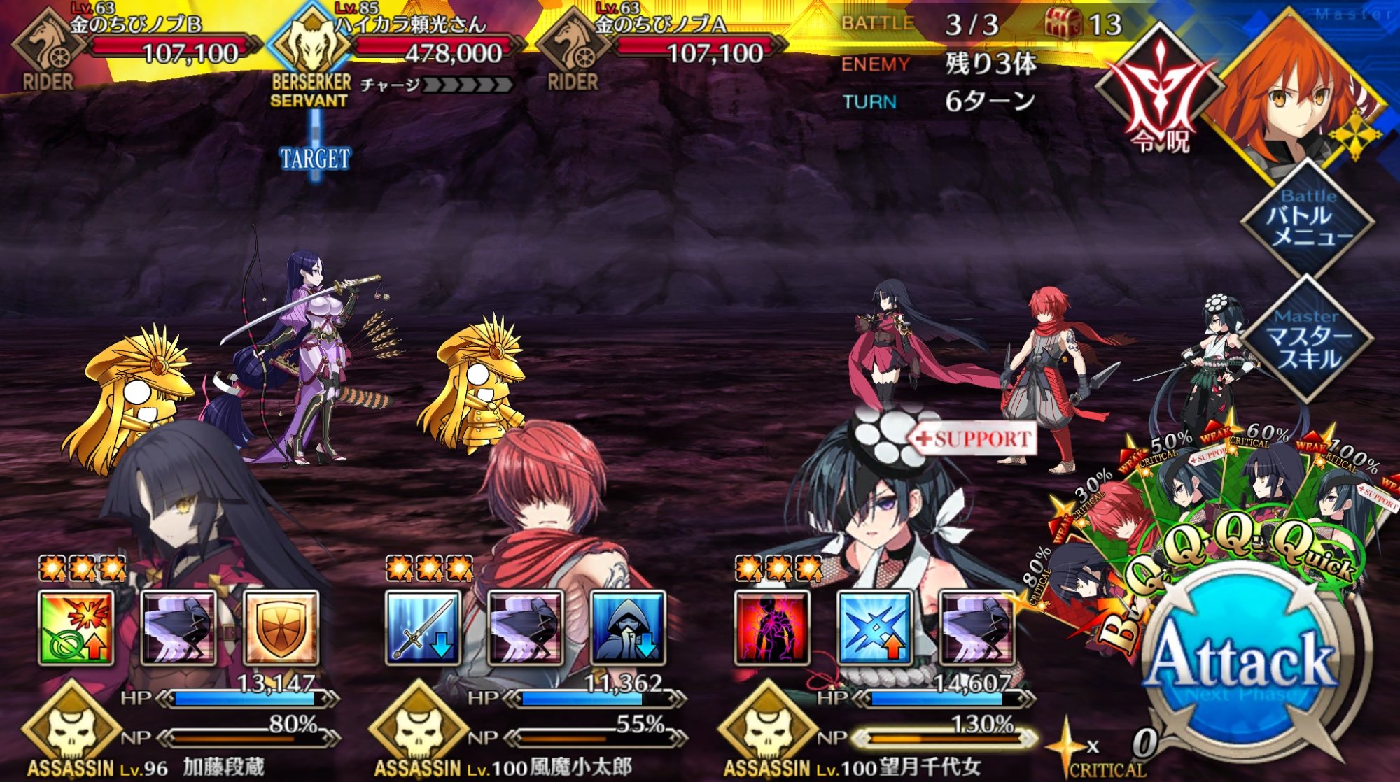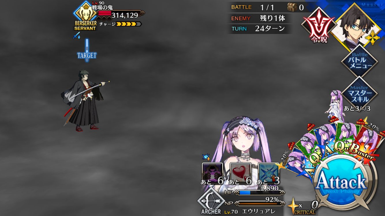 アヴィケブロンに無敵をかてもらいつつ1ターン目に倒れてもらう(タゲ礼装なしで)