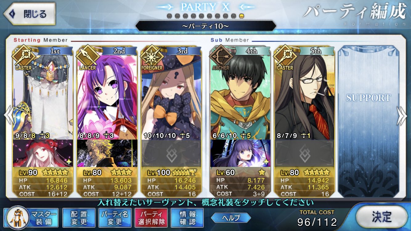 3wave目で語り部さんの宝具が撃てるパーティ。