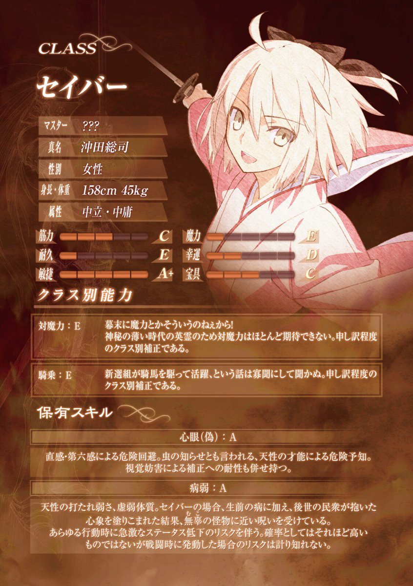 ほかのオルタなら強いて言うならオニキが一番近いかもしれんが、純粋な意味での沖田総司の英霊って訳ではないしね>>117