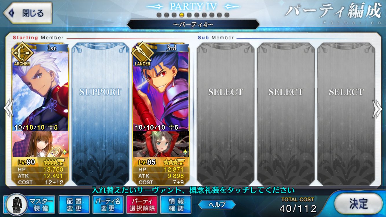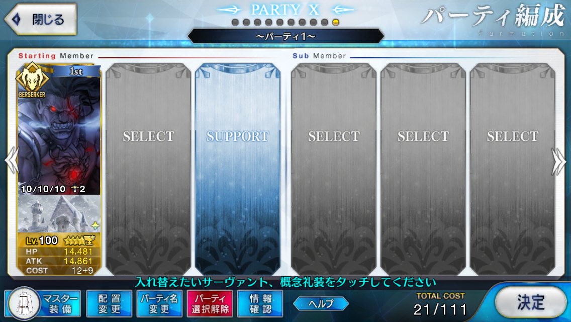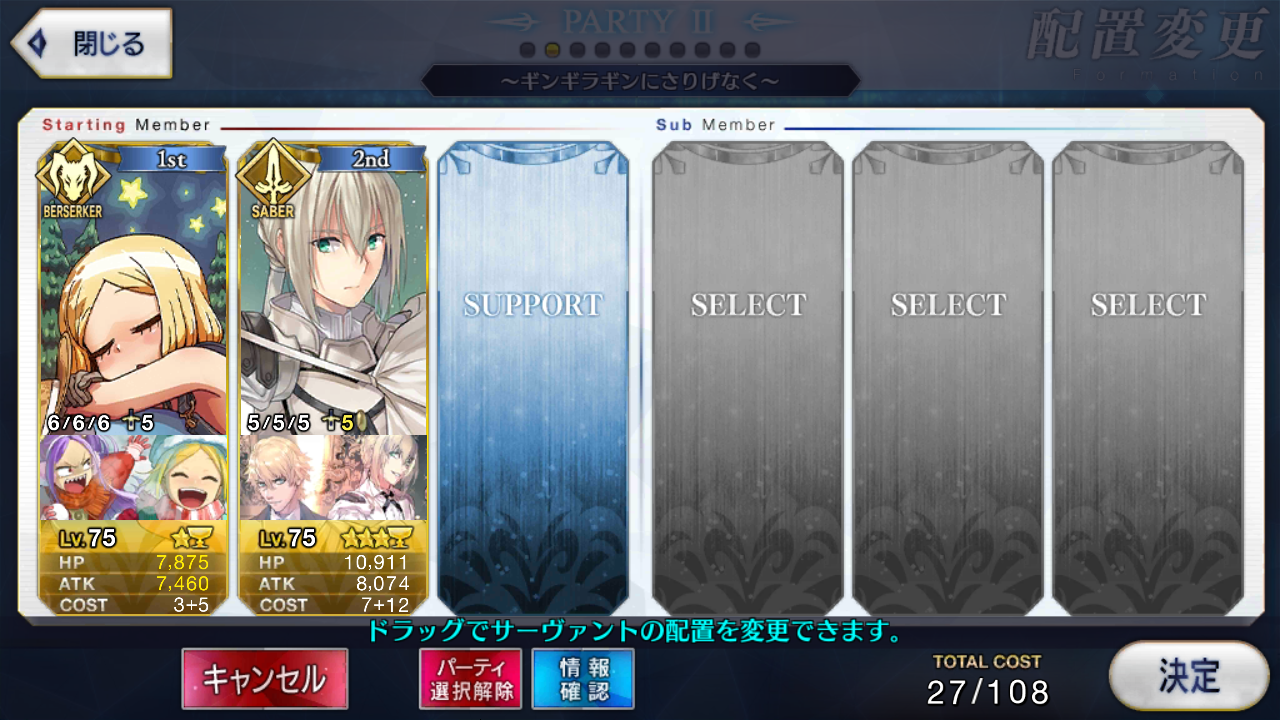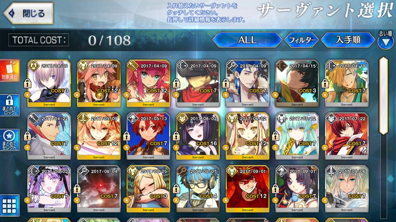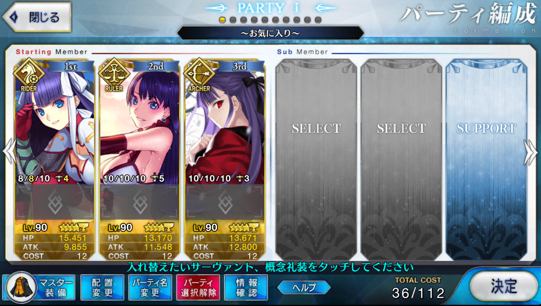 サポートならイベントでなければこういう面子かな。剣は武蔵ちゃんやアーサーもスキルMAXだけど、ここ最近は宗矩が担当してる。