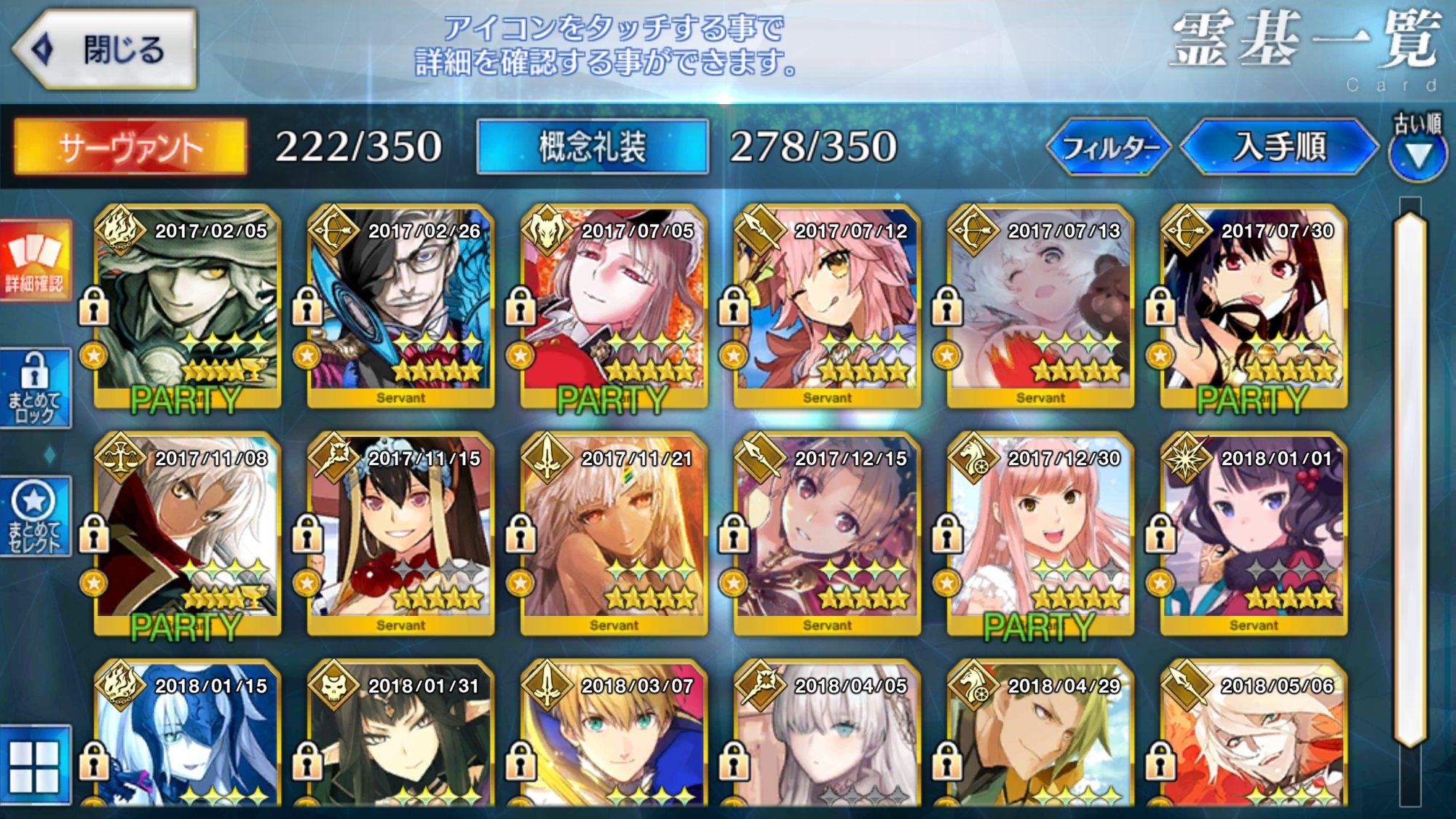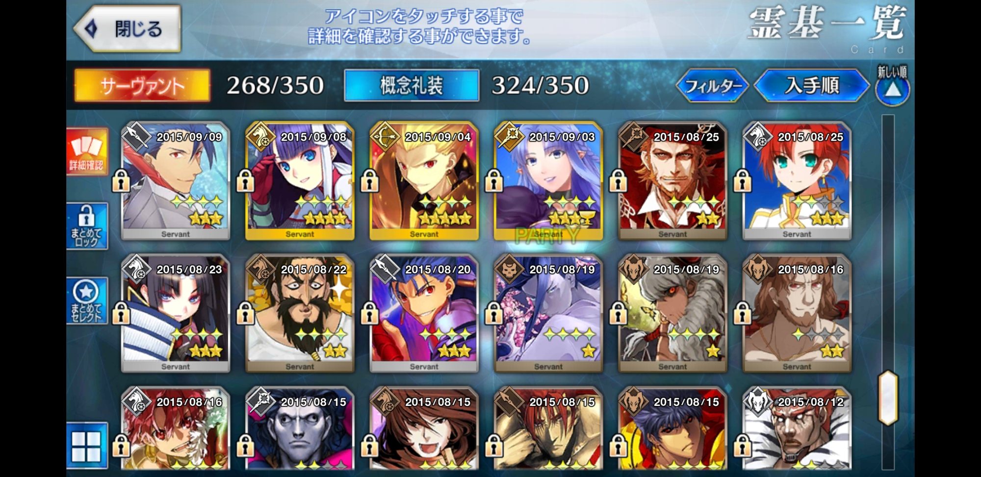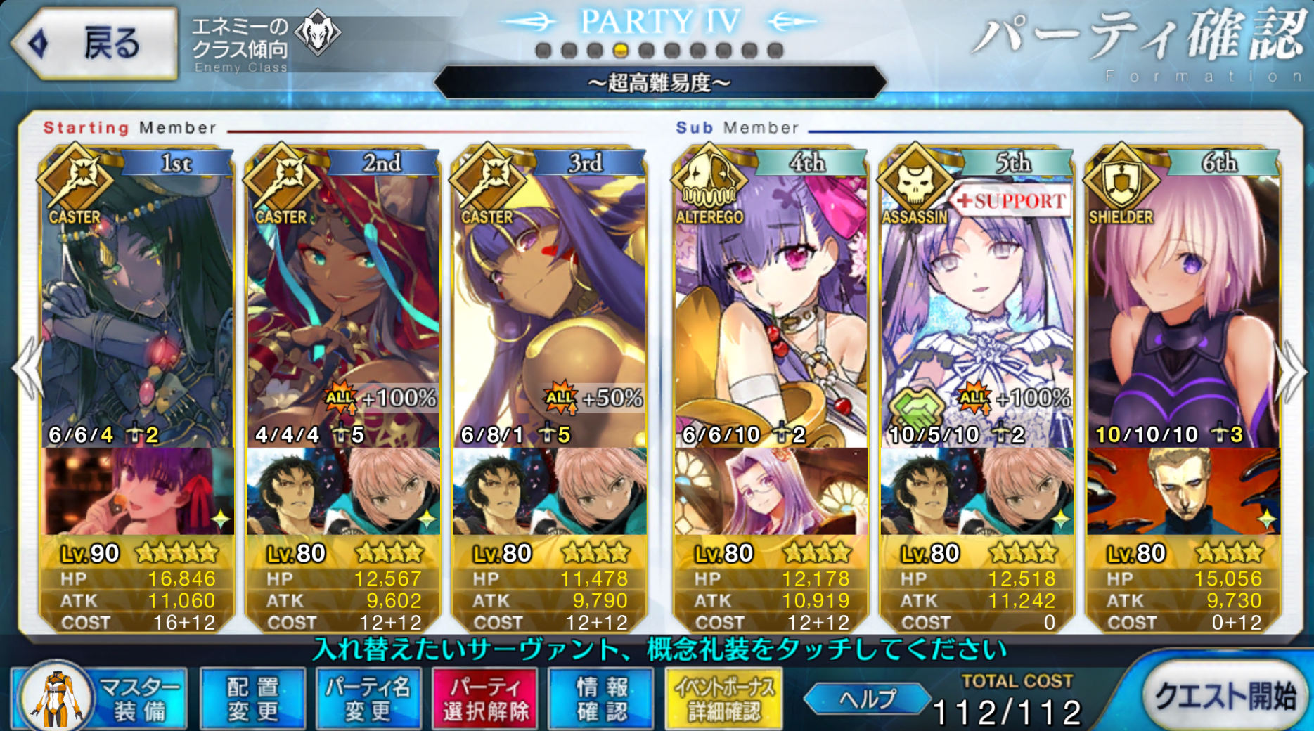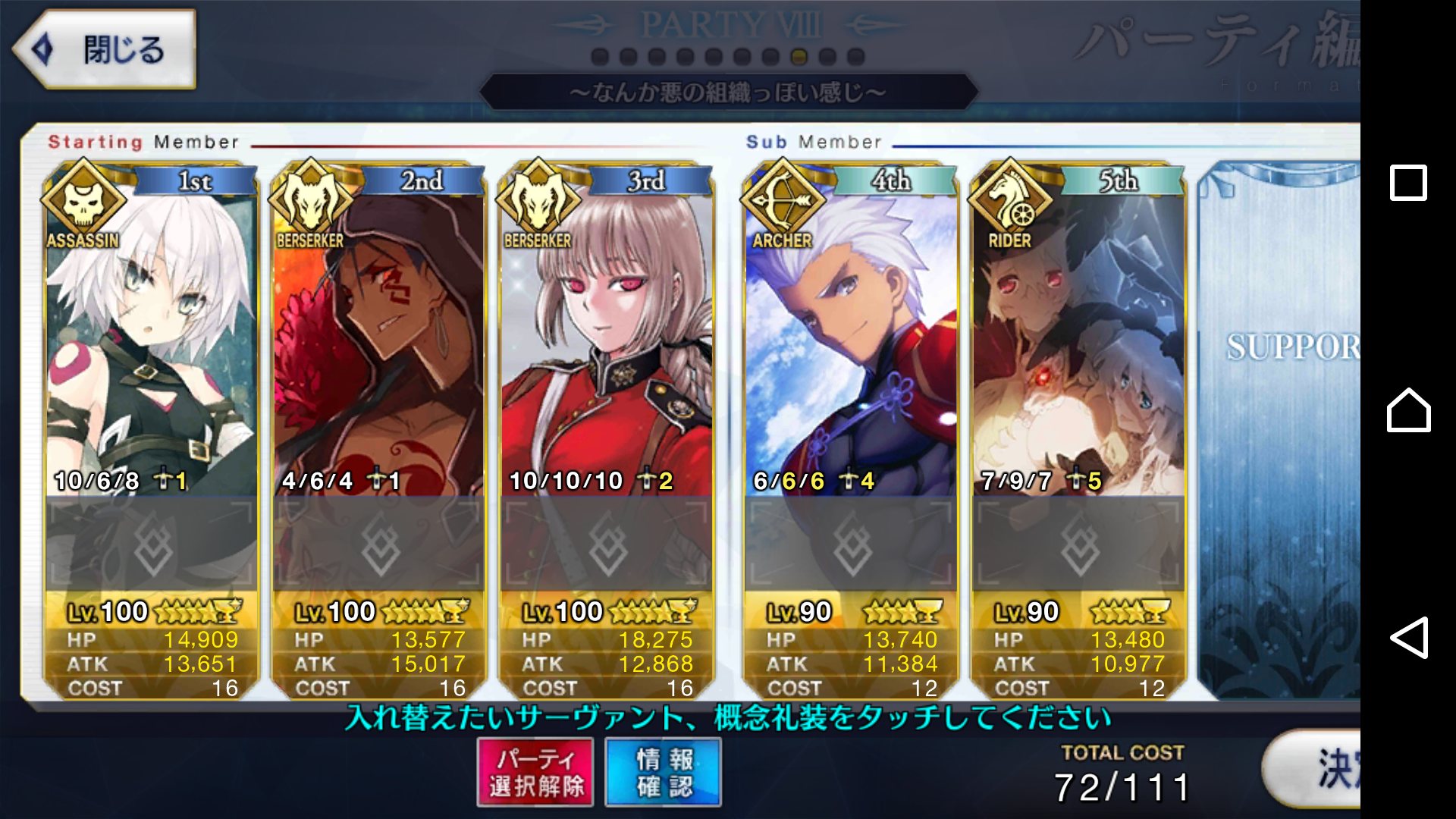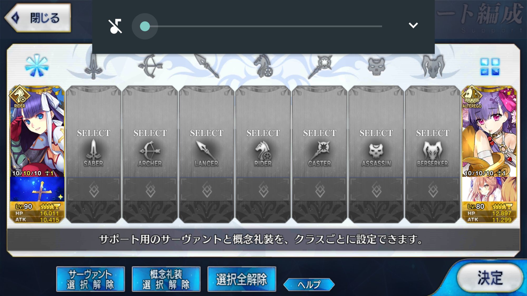 サポートならイベントでなければこういう面子かな。剣は武蔵ちゃんやアーサーもスキルMAXだけど、ここ最近は宗矩が担当してる。