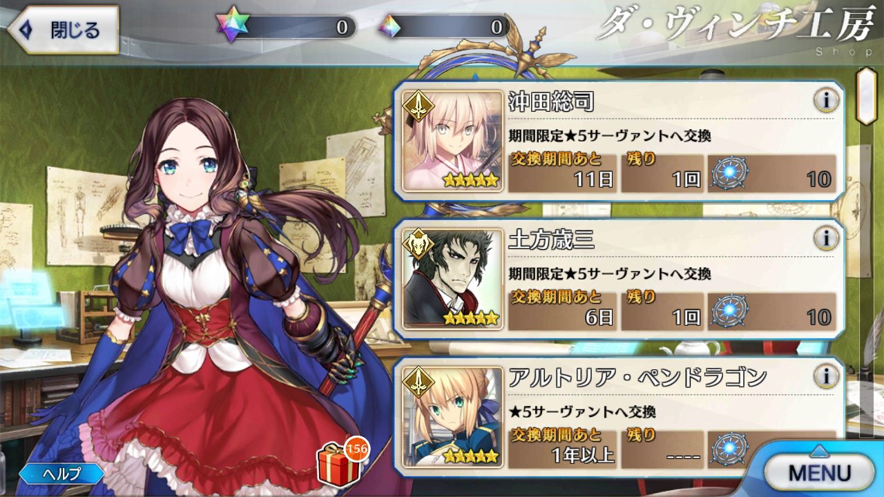 沖田さん狙いで単発ガチャを回していたら、アヴィ先生と看板娘が当たった。これは使えと言う啓示だろうか・・・