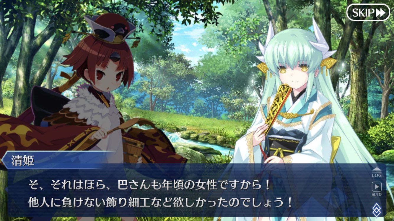 清姫のあの時のセリフは「巴も若い女なので誰にも負けない装飾品が欲しかったのかも(意訳)」だ