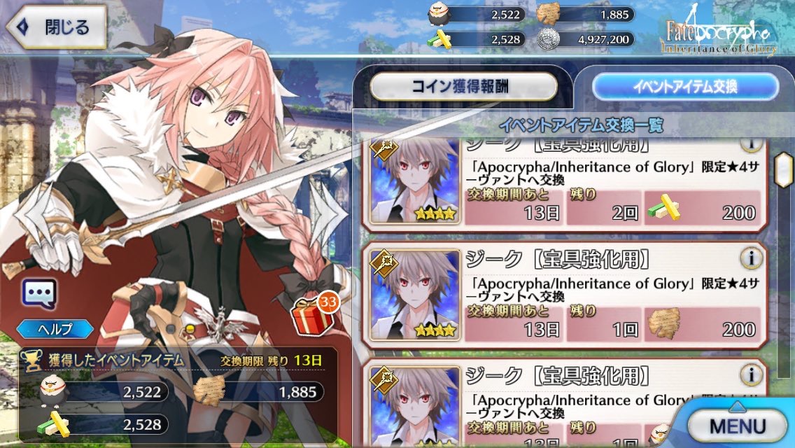 聖杯あげたい鯖が多すぎてあんまり100に出来ない