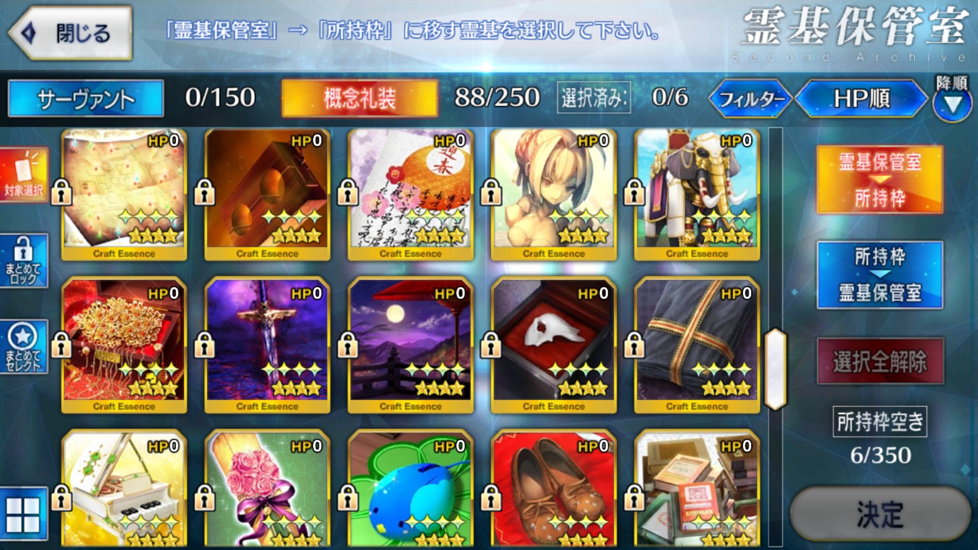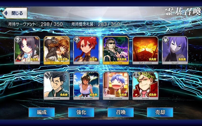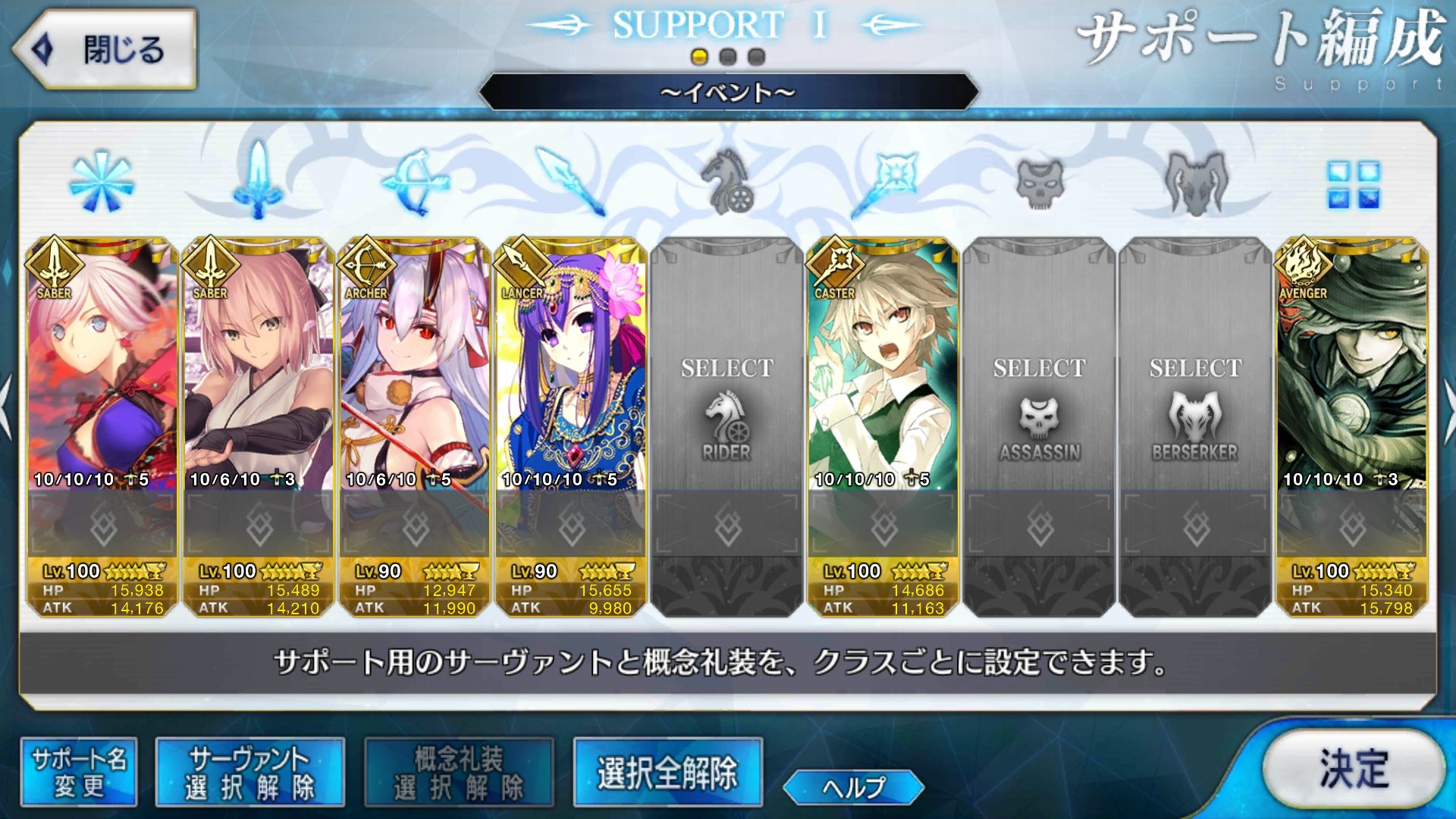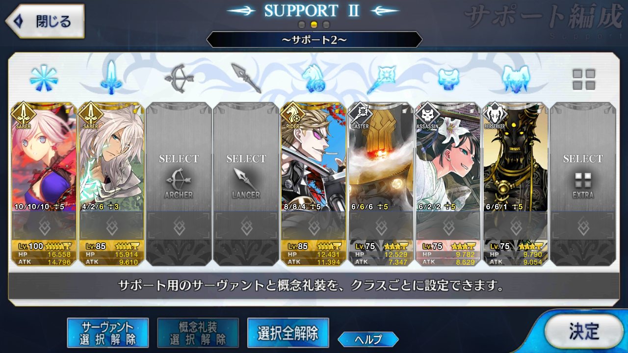 剣:ジークフリート、カエサル、ジル、フェルグス、ランスロット、ガウェイン、ラーマ、アーサー、ベディヴィエール、柳生但馬守宗矩