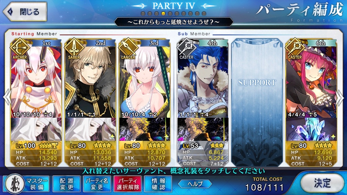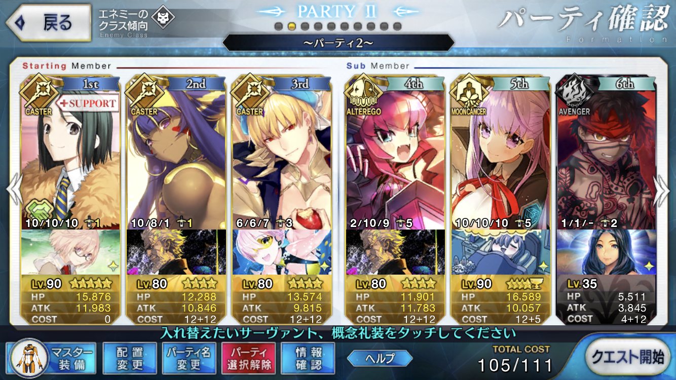 つまり宝具と併用して使えということだよ君。チャージ減少、強化解除、防御デバフ三ターン、魅了、攻撃力ダウン三ターンクリティカル威力ダウン三ターン、デメリットhp1000ダウン、1ターンスタン。これでどうだ(雑)!>>976