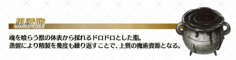 落とすエネミーが割と鬱陶しいから足りなくなると辛い黒獣脂