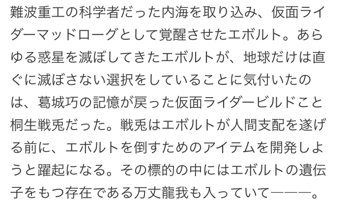 いや実際来週になってみないとエボルトがほんとに世界を滅ぼすのやめたかどうかわからないんだけれどね。たて乙。フライングはダメよ。