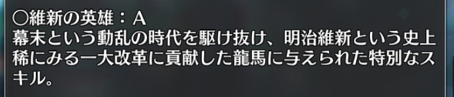 よく考えたら、龍馬の宝具のペナルティどうなるんだろう?いやケイローン先生も連発出来るし、「人理崩壊で元々世界があやふやになってるから、逆に存在固定出来た」とかで解決してるかも知れないけど・・・。