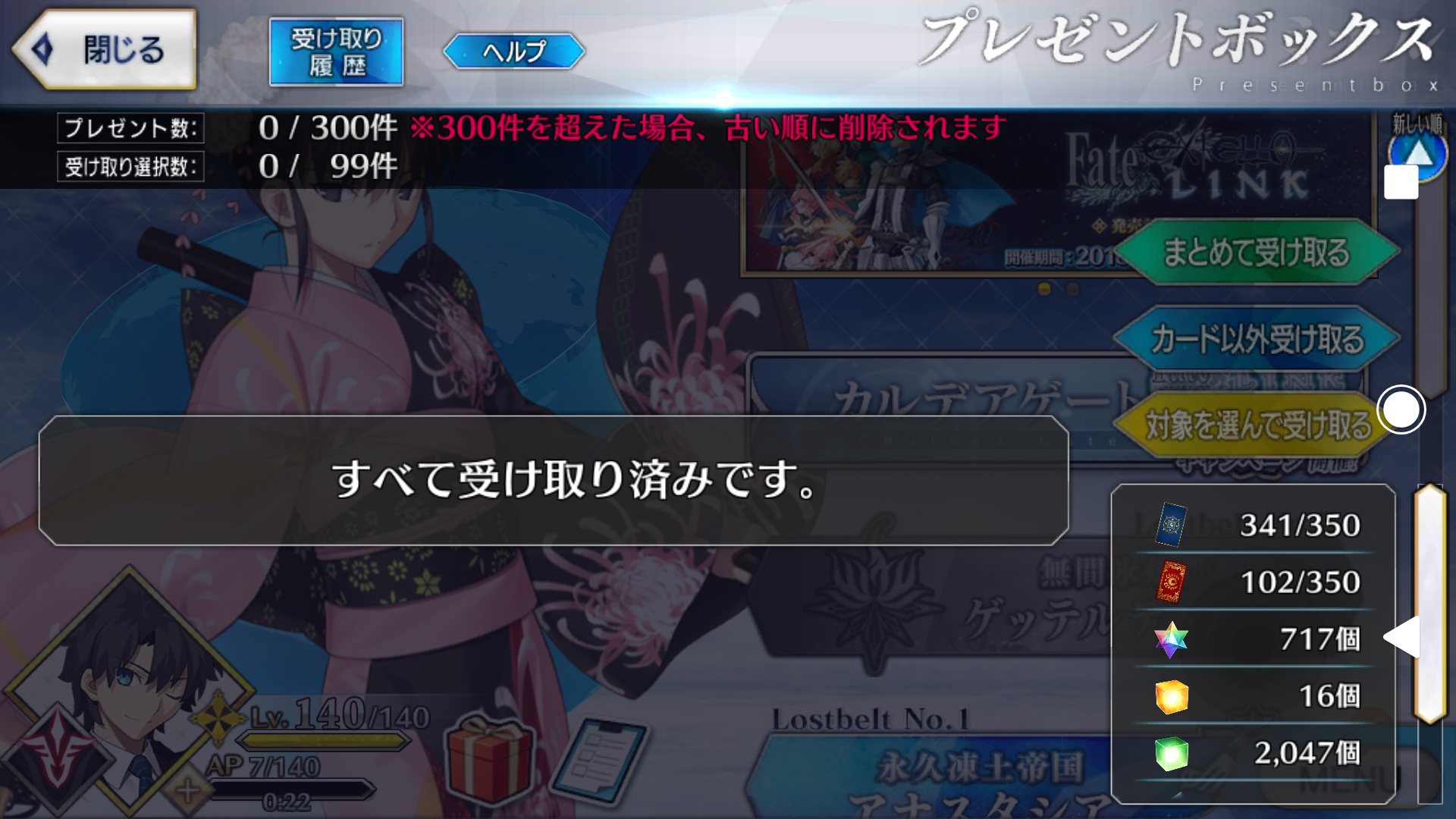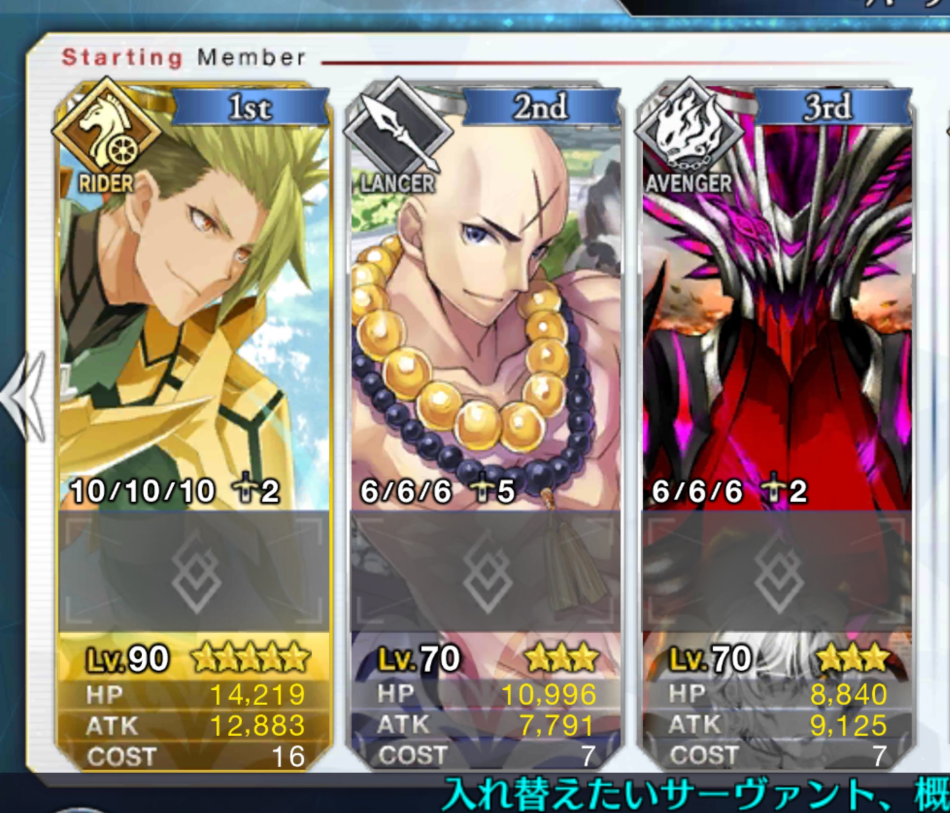 乙事主かな?(AP消費して備えてたら種火のせいで保有鯖の空き枠がない事に気づく)