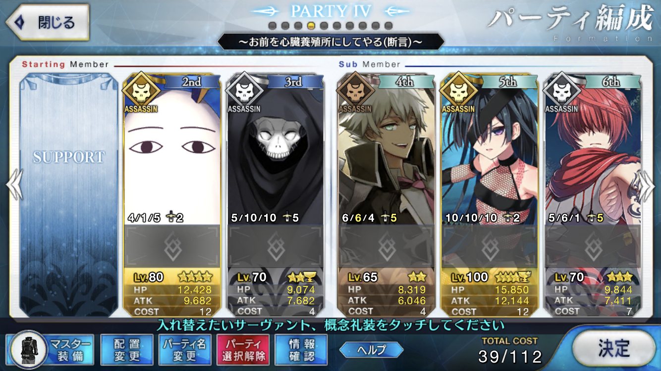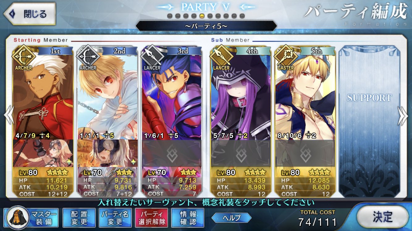 剣豪戦で使ってきたこれでもかデバフとかあー、マイルームに複数の鯖呼べるようにならないかなぁ