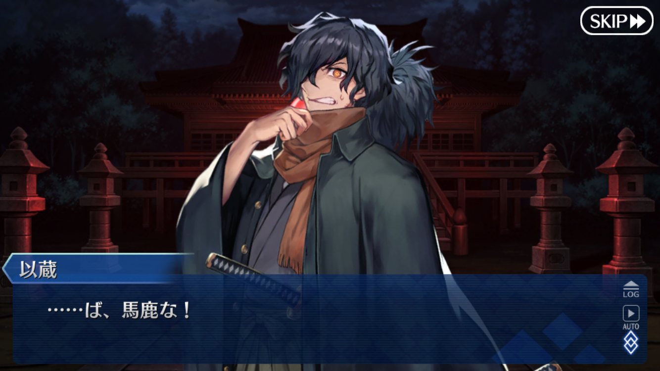 俺は手拭いと羽欲しいからファントムをしばき倒してる。浮遊敵も稼げてお得。なんか、以蔵さんは元があんな感じだから、反転して「わしが守護らねば···」ってなる以蔵オルタという電波を受信した。