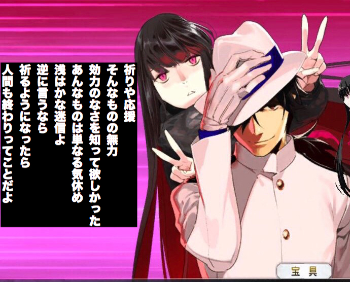 基本的にぐだマシュの敵対者は格上ばっかだしな、同じ対等な敵はそれこそ獣国キャスターコンビが唯一。>>937