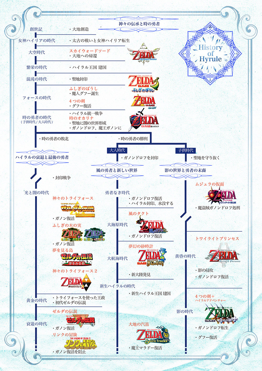 基本的に子供時代と大人時代がある時オカが分岐点。結局ガノンドロフ毎回復活しているけどさ。