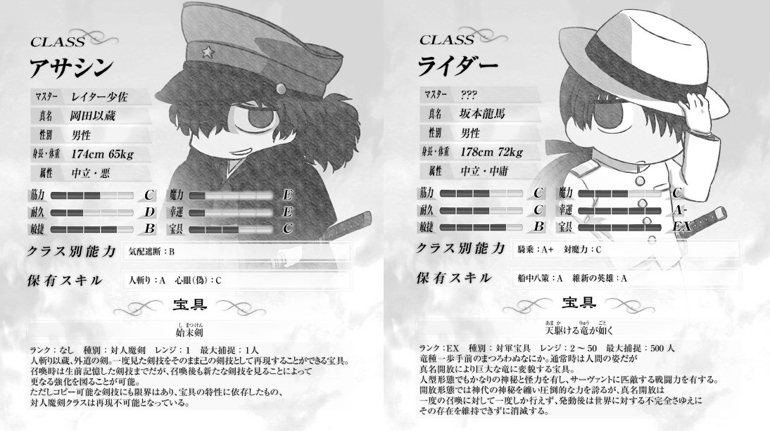 セイバー並の戦闘力を発揮するけど基礎ステはアサシンだからそれなり、と用語辞典でも言われてたしな>>918