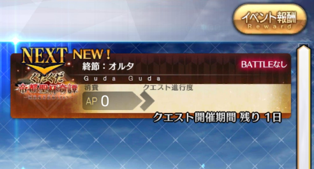 楽しかったぐだぐだイベントも終幕です。沖田ちゃんを引けた人もそうでない人も寂しいですがここでお開き。次回のピックアップを待ちましょう。