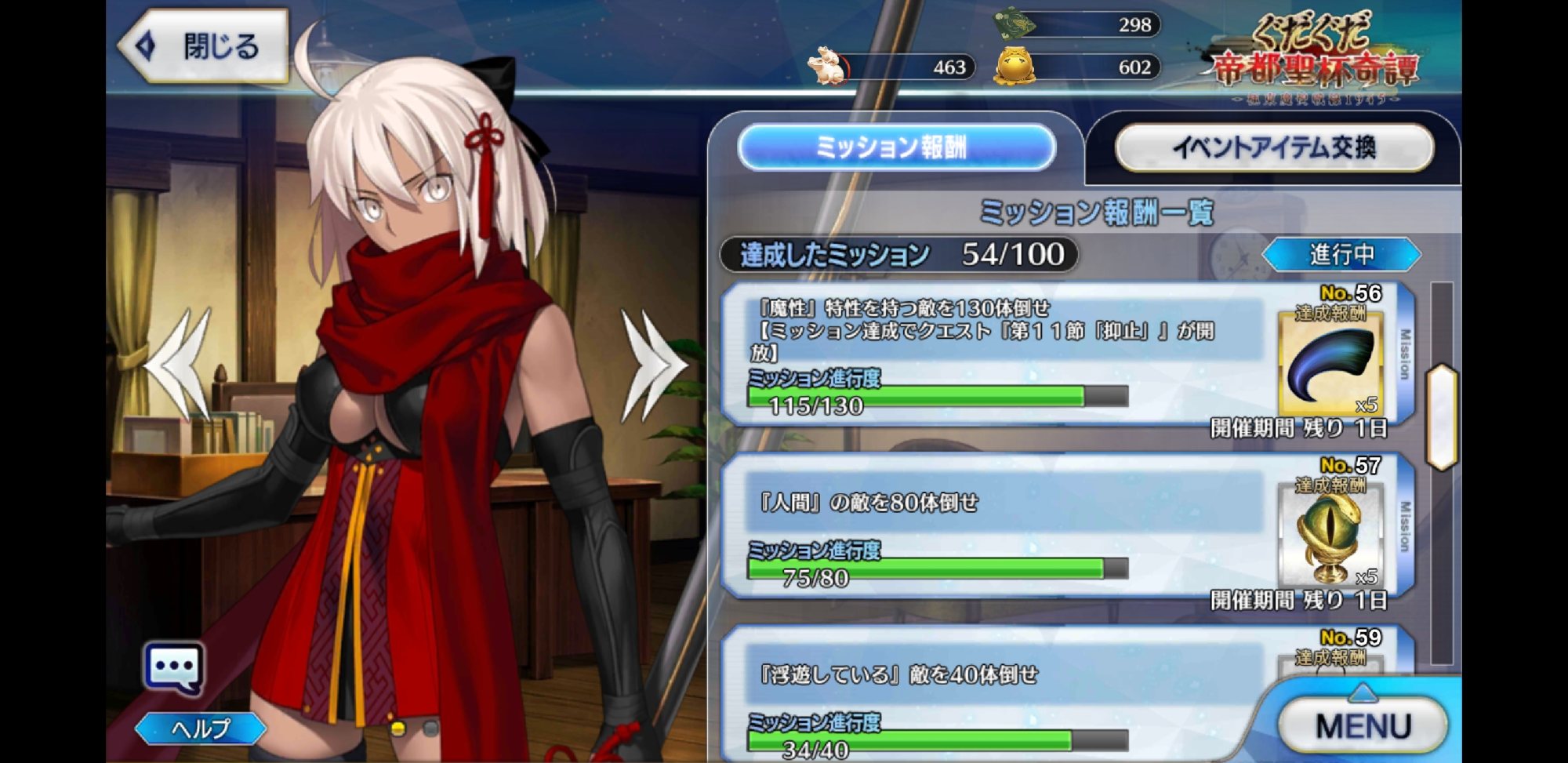 ミッションにやり忘れはないですか?最後まで頑張りましょう!」