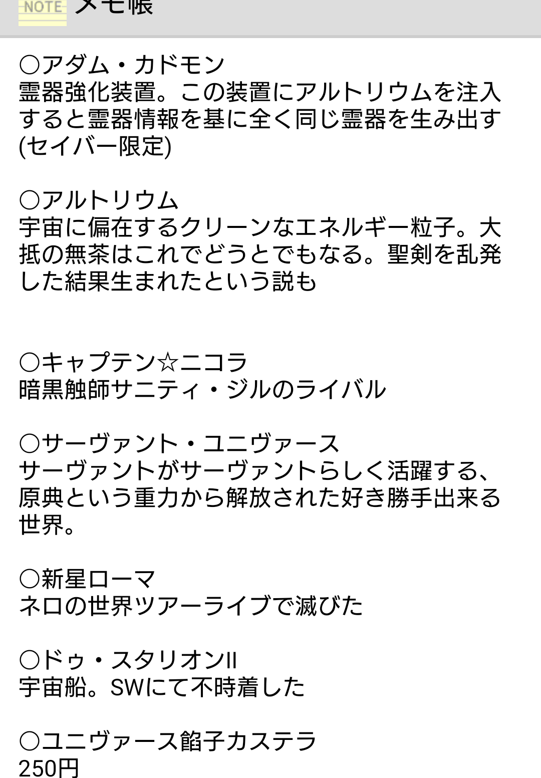 塵は20個くらい集めるのにもヒイヒイ言ってたのにエミヤさんがいきなり40個要求してきたのはビックリした、帝都の報酬と英霊兵のお陰で何とか集まったけど>>890