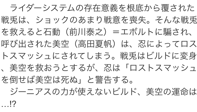 東都「別世界の俺は災難だなぁ」>>728 ビルドで一番好きになりそう。