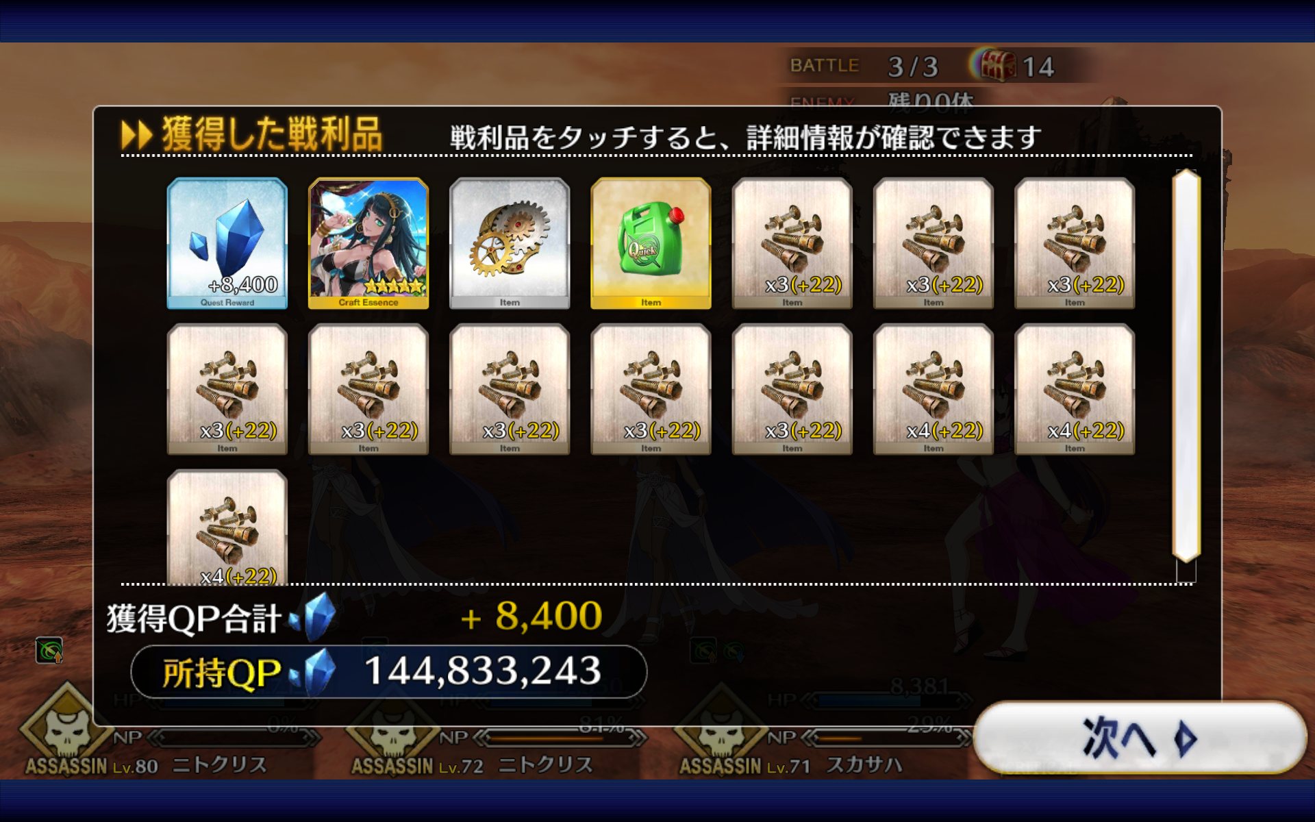 エジソンは耐久EX(E相当)なので………ああ、今回のイベントって1クエストで45万QP確定だったか………少しは周回しなきゃ………