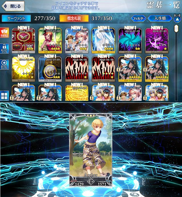 ニトちゃんか☆5礼装がくるとラッキーだけど、さすがに5枚じゃなぁ - 5名無し2018/06/30(Sat) 19:56:24報告