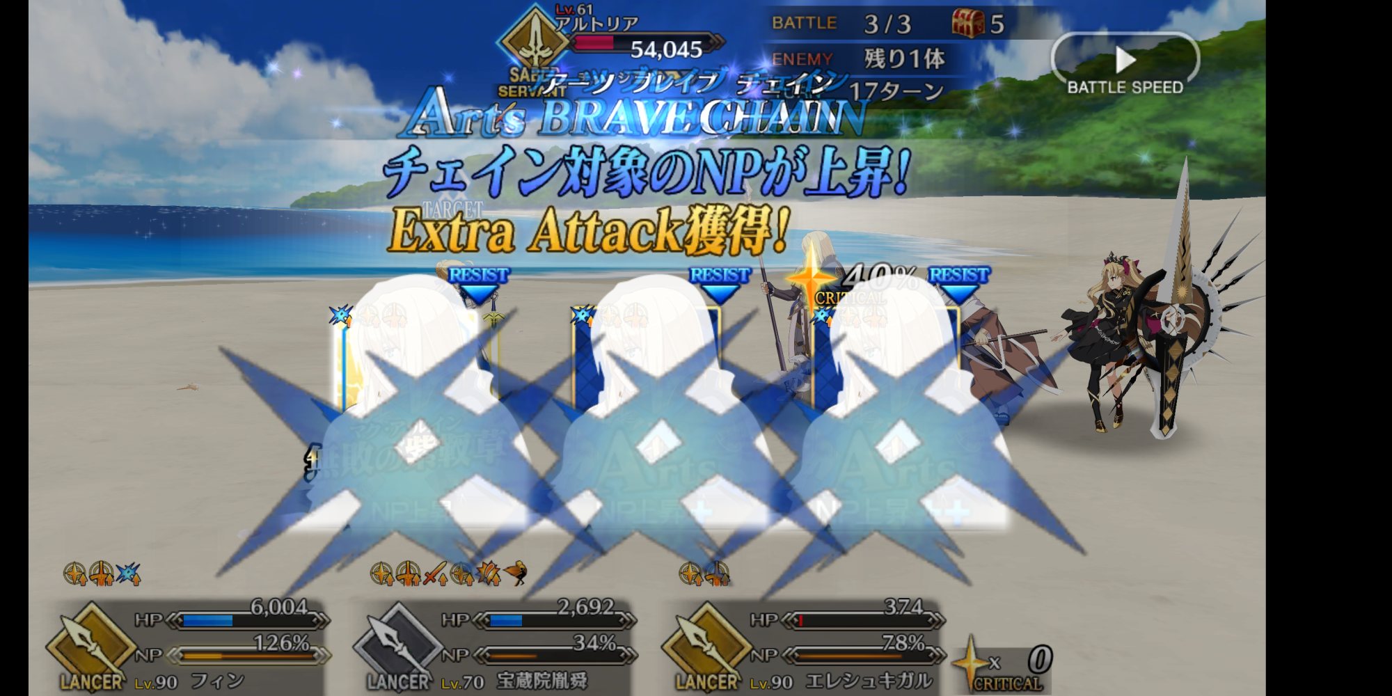 毎ターン謎のインドパワーでEXアタックをしてくるカルナさん。ユグドミレニアのマスター礼装は絶対来ると思ったんだけどなぁ…。
