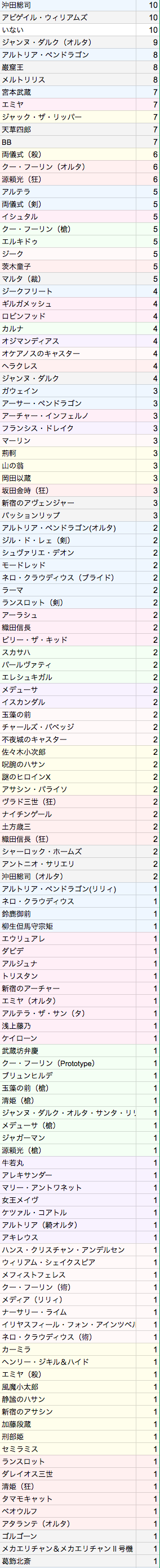 お前が作ればいいんだよ!そういえばここの聖杯を捧げた鯖のアンケートの結果はどうなったんだっけ?