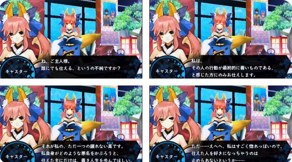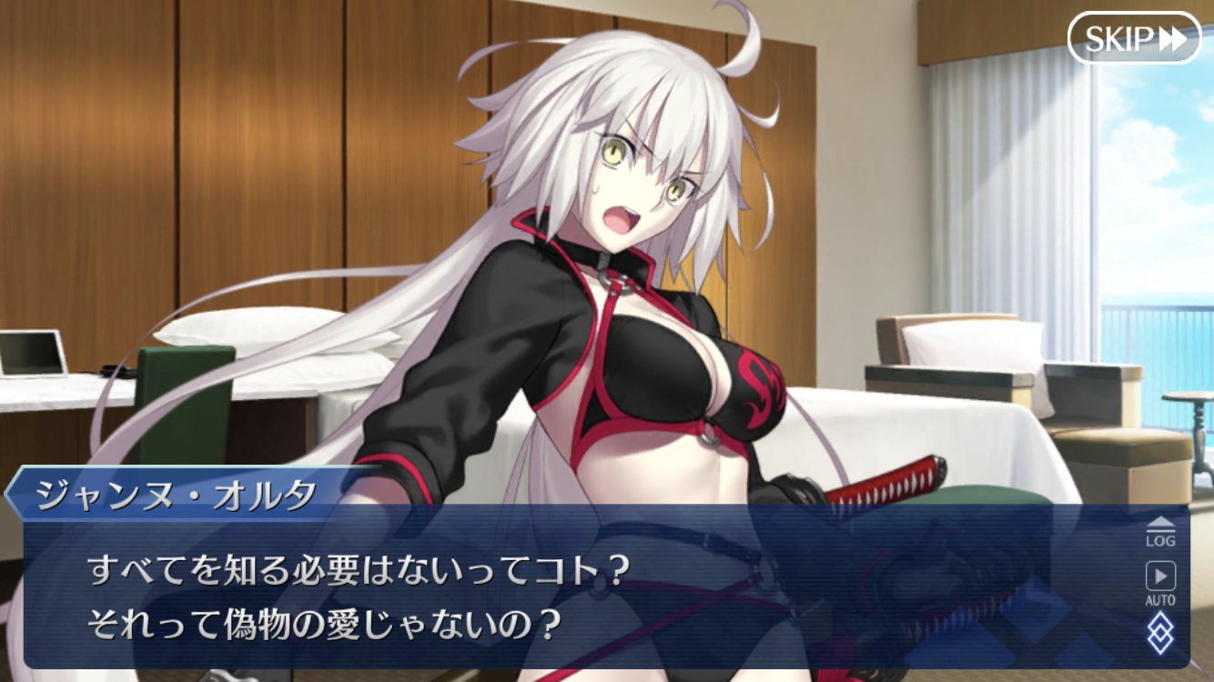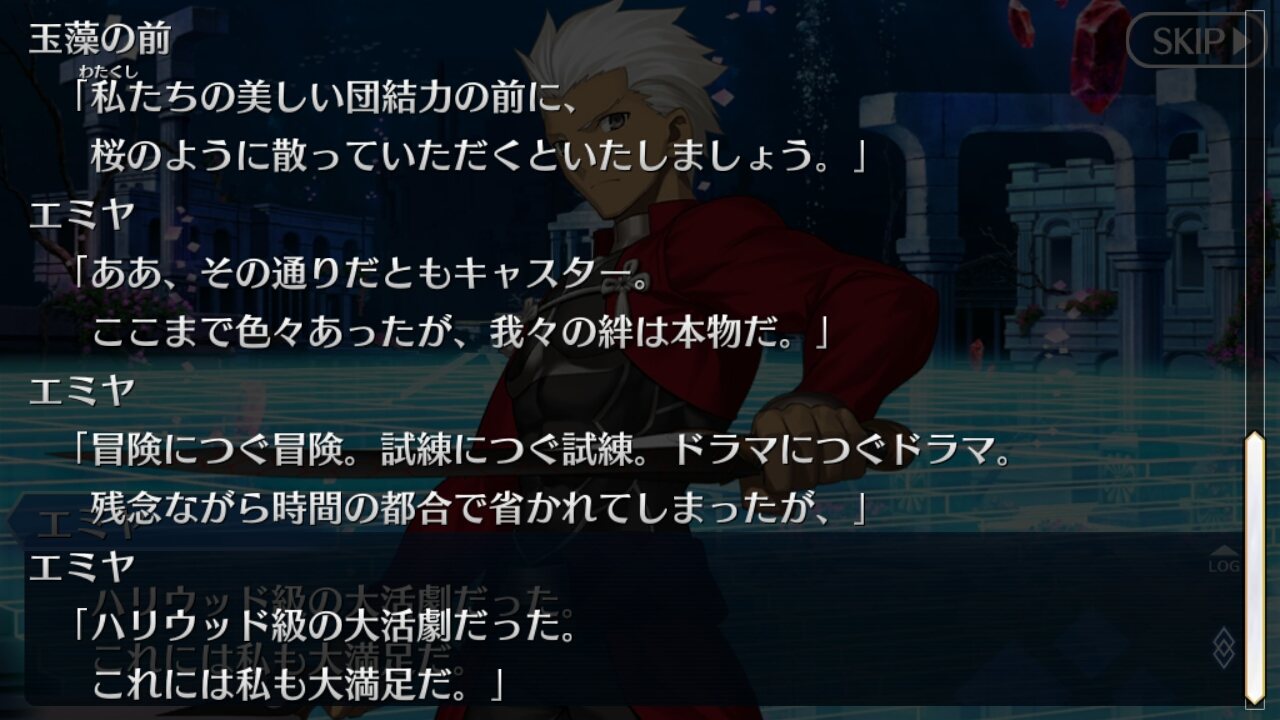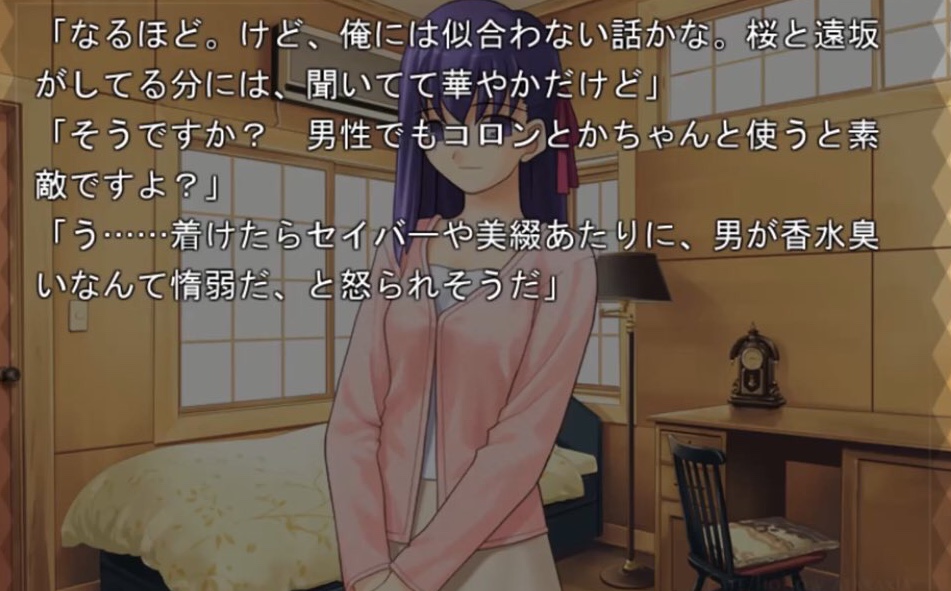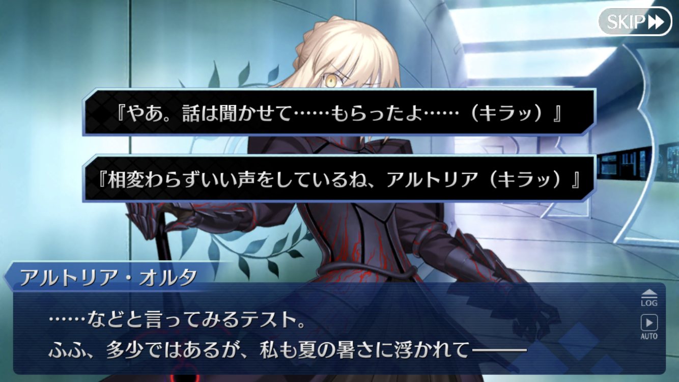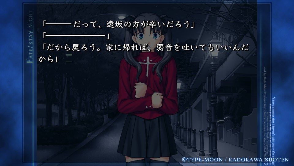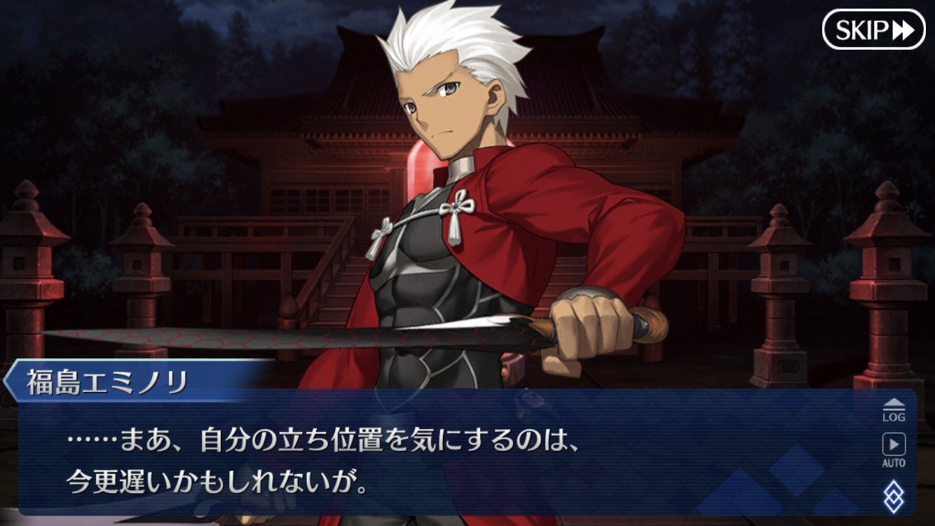 「だがそれはあくまで次の話。今のオレの目的は、衛宮士郎をころす事だけだ。それを阻むのならば―――この世界は、おまえが相手でも容赦せん」テ
