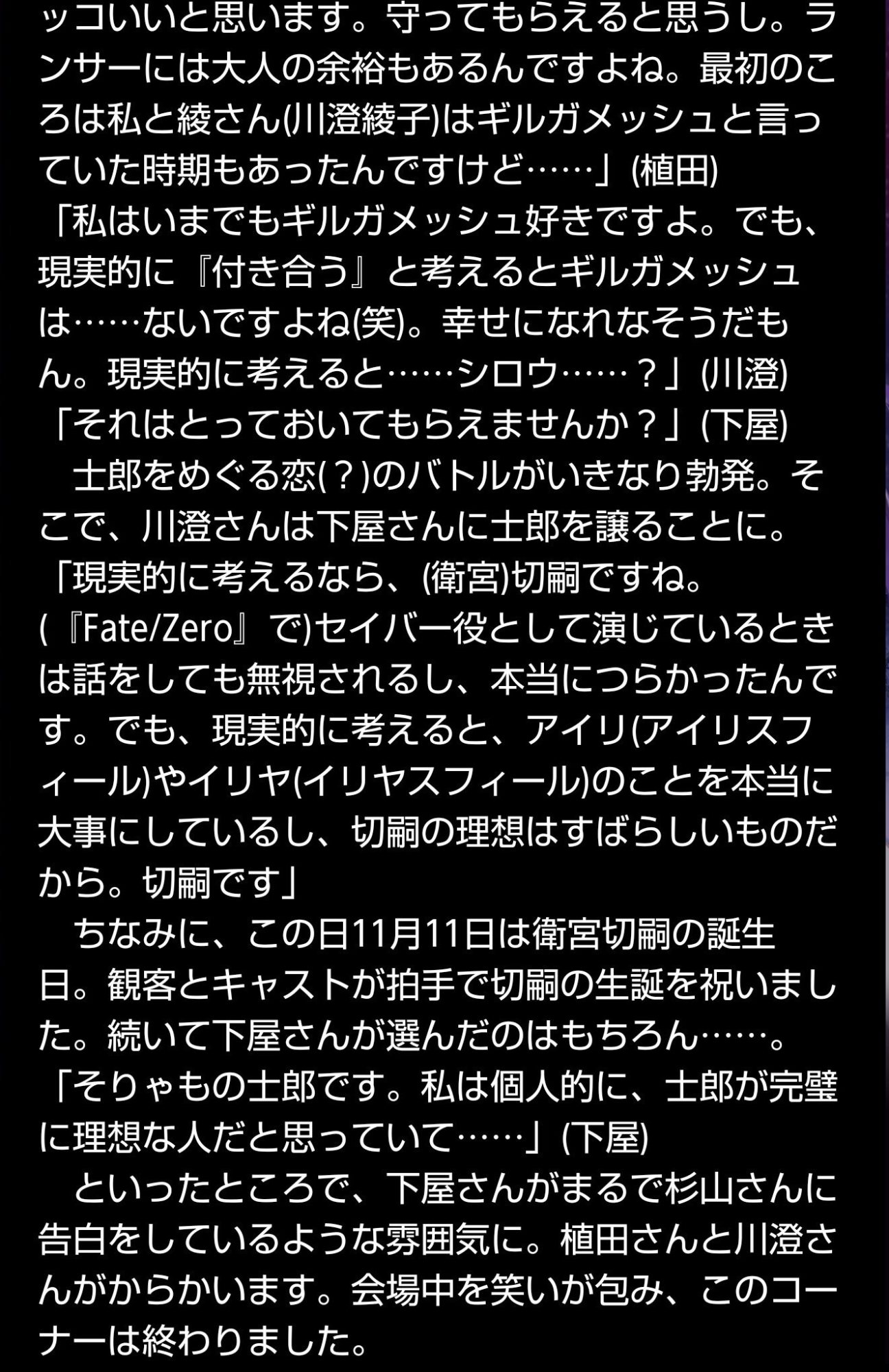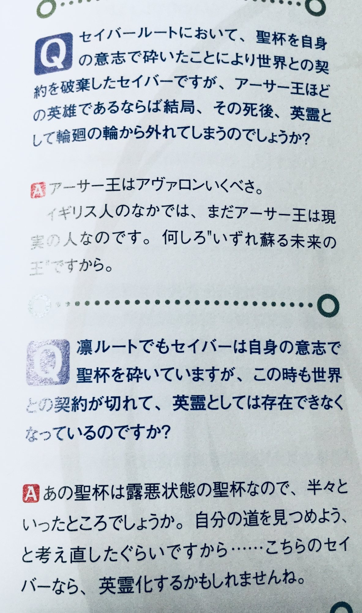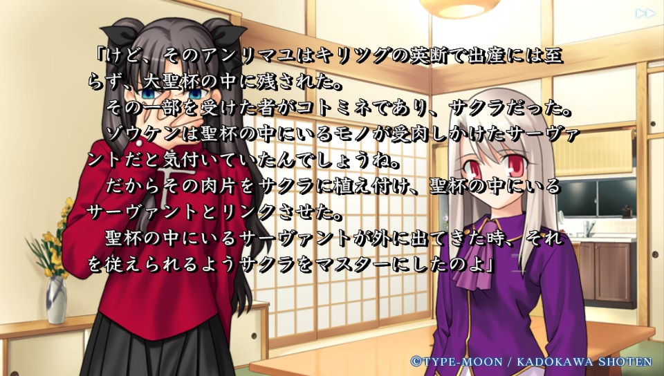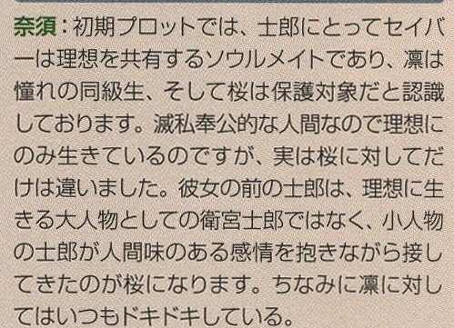 ・「セイバー。いつか、おまえを解き放つ者が現れる。それは今回ではないようだが――おそらくは次も、おまえと関わるのは私なのだろうよ」