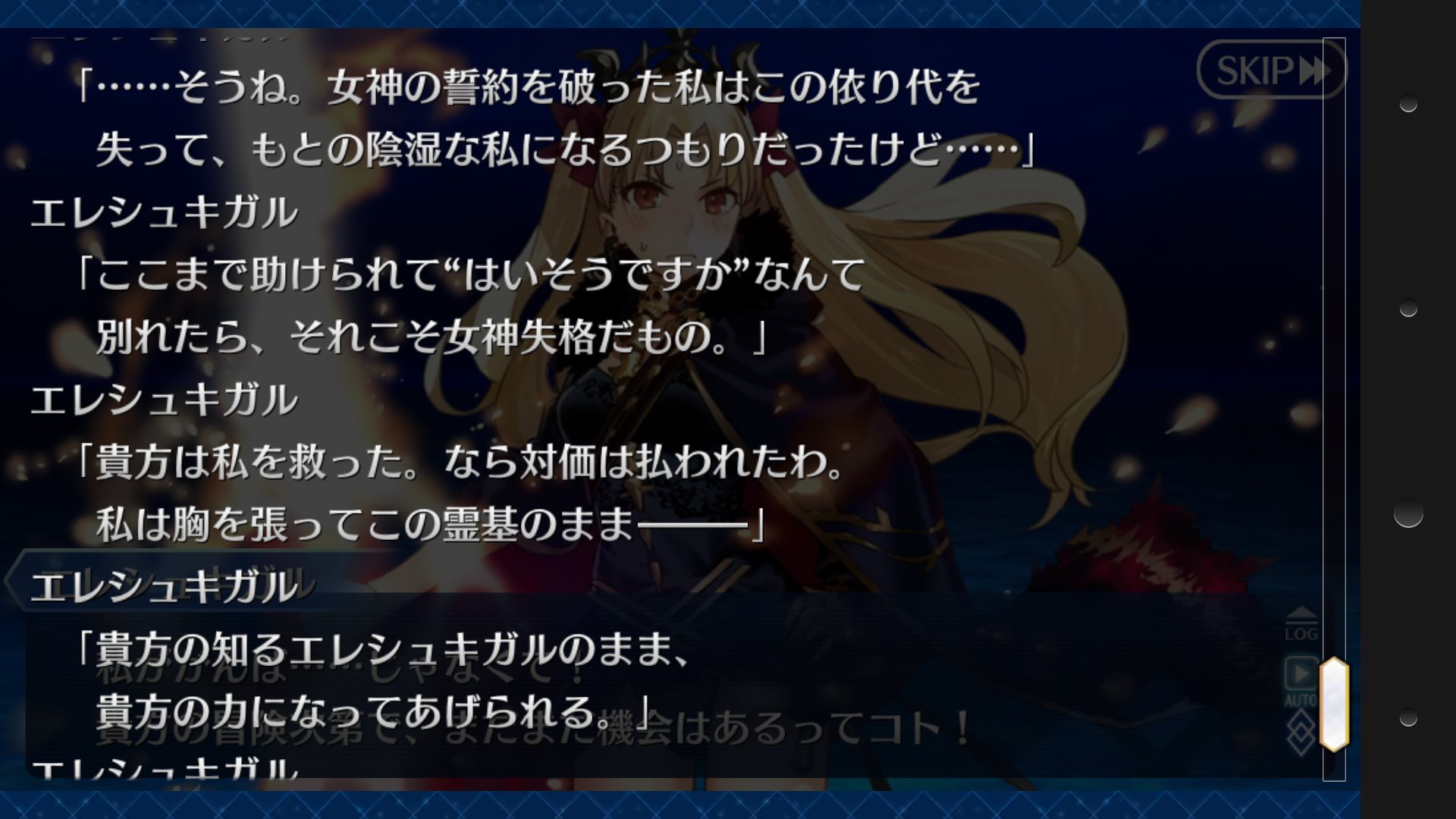 「肯定だ。当方は賢者の予言に逆らうつもりでいた。是なる永劫の炎に捲かれた館より乙女を救いはしても、愛する等とは有り得ぬと信じていた。だが———」