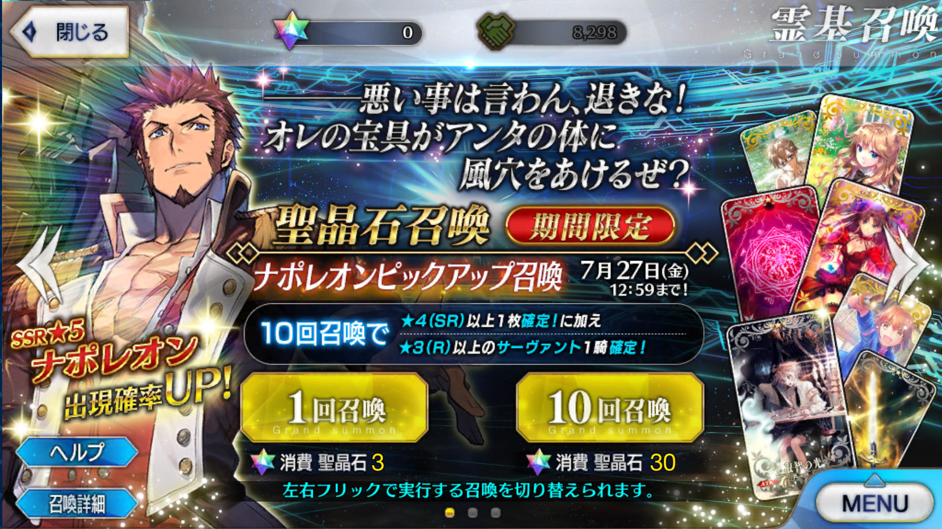 流石にシンプル過ぎるからね……仕方ないしばらくぶりの☆5男性セイバーダゼ!