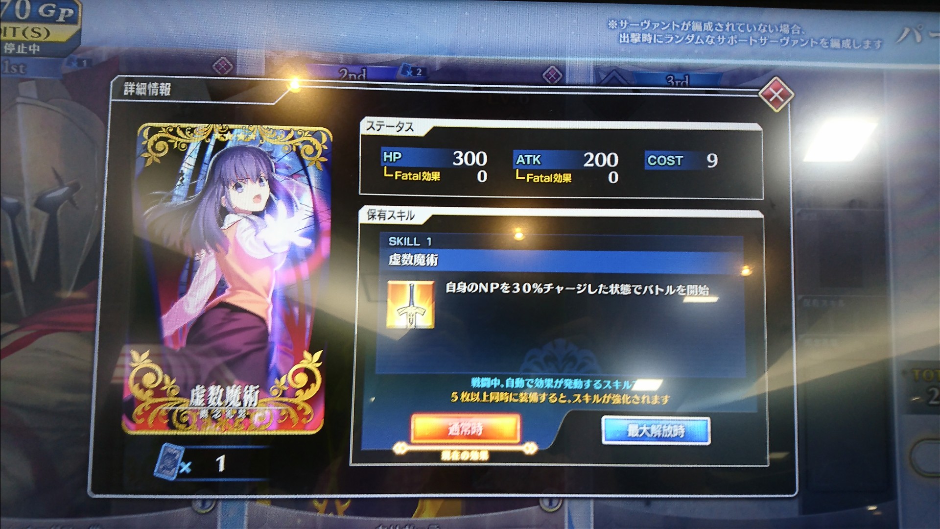 ワンプレイに必要なGPが200ポイント、つまり200円。