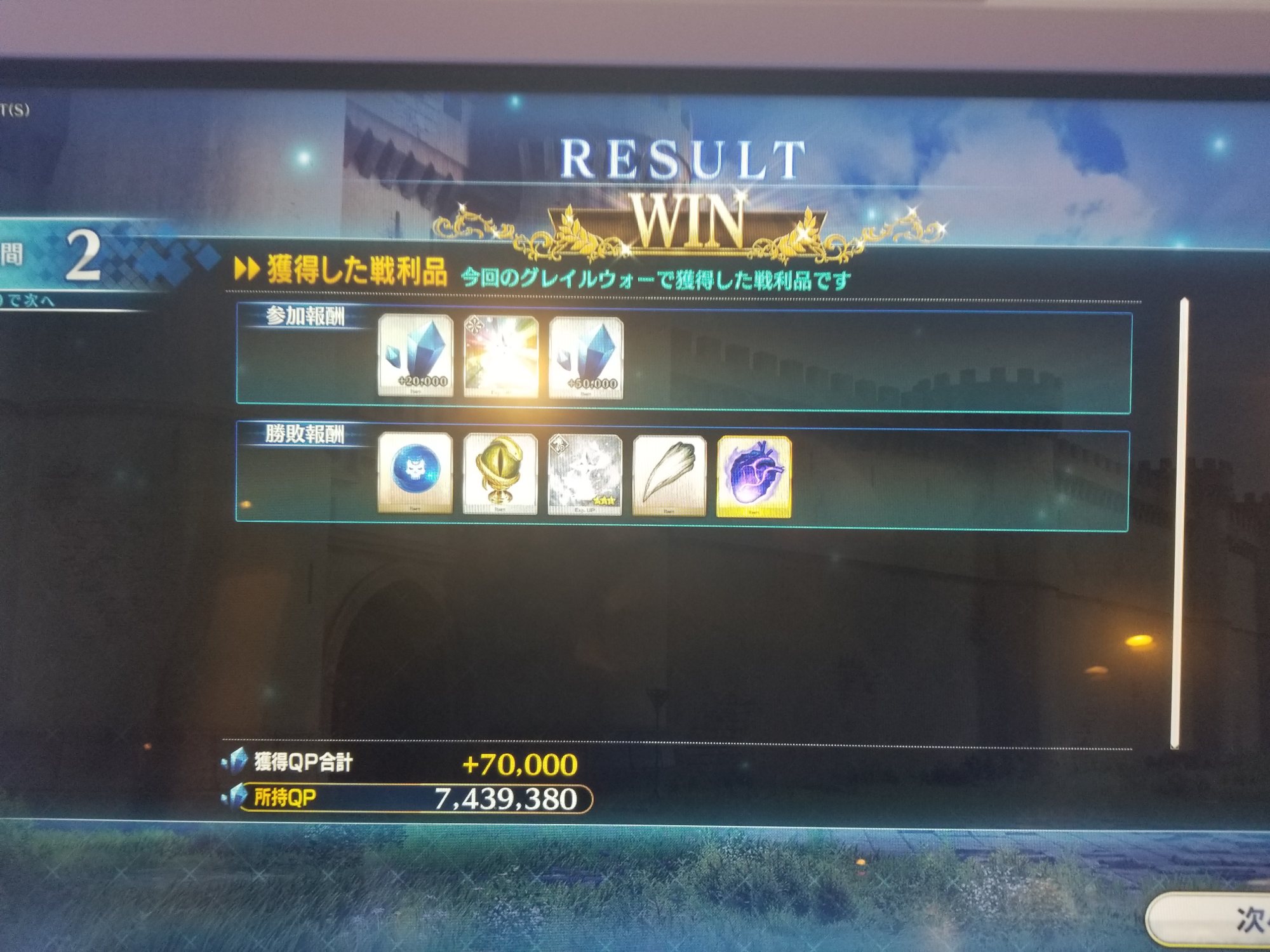 クエストクリア後の呼符に100円。