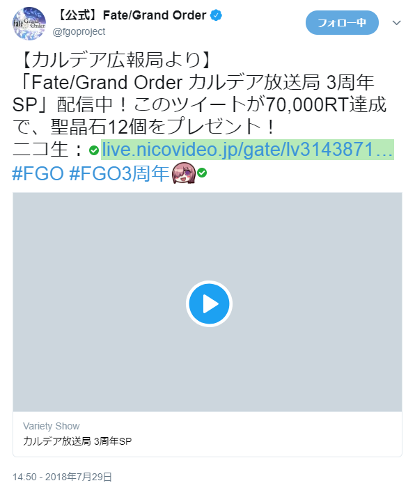 【Fate/Grand Order カルデア放送局 3周年SP】