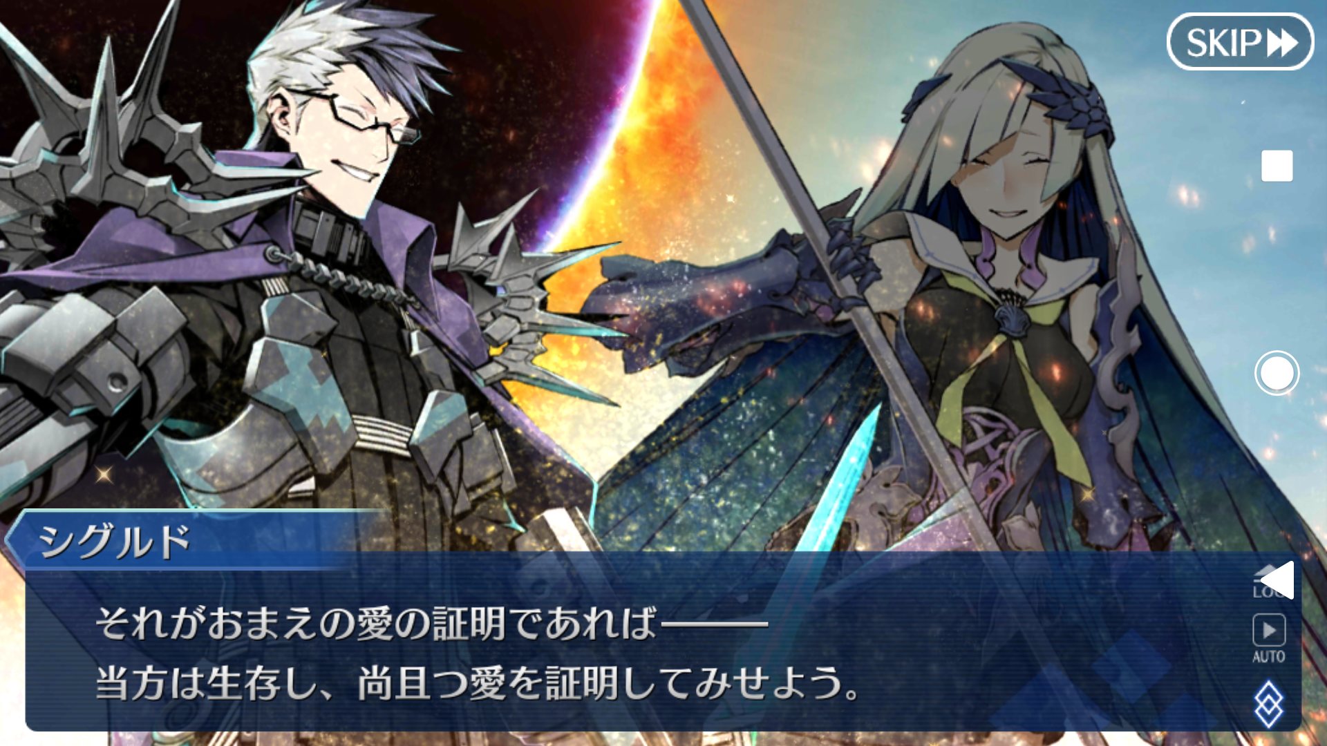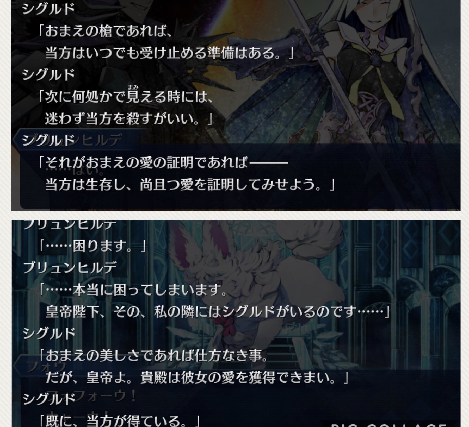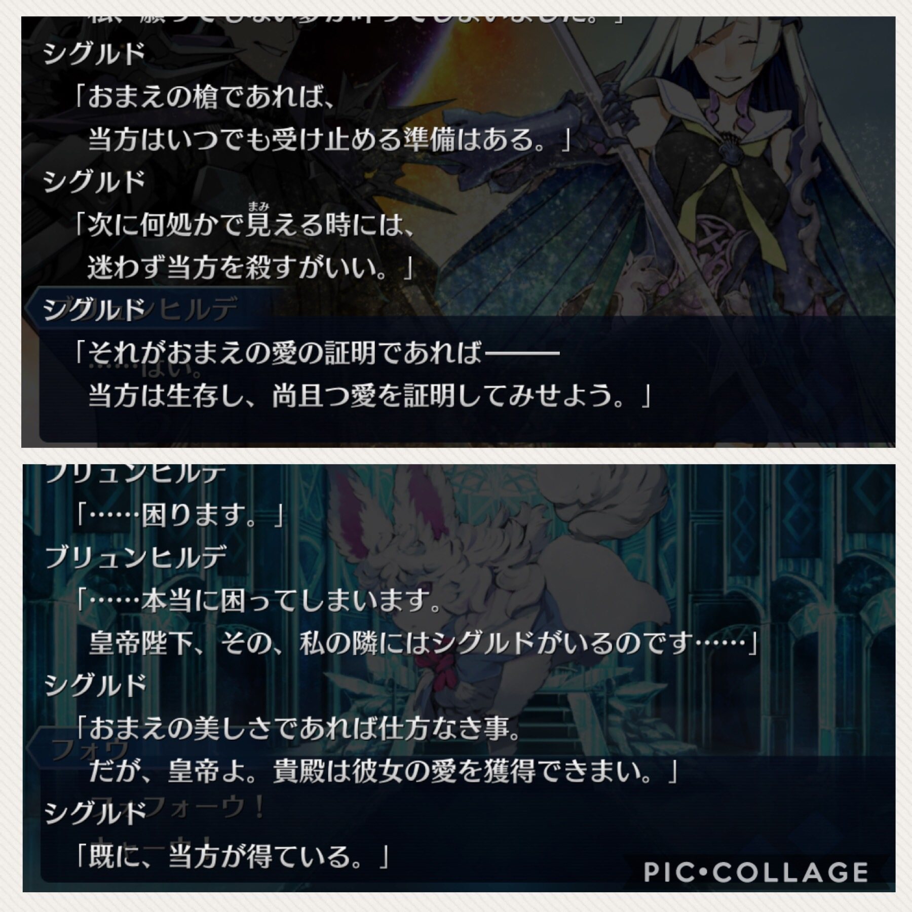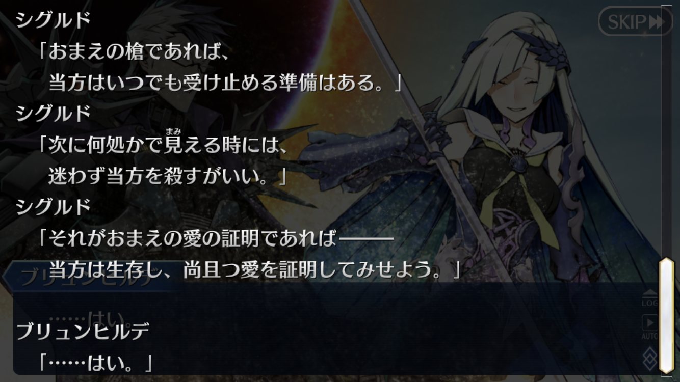 シグルドの服未来すぎない?と思ったけどブリュンヒルデと並ぶとお似合いに見えるな。やっぱりシナリオ後だとタイトルの印象変わるな
