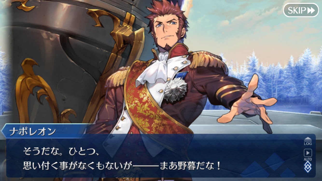 おまけにクリプター全員の為に6回追加で世界救ったみたいなこと言われてたしナポレオンは設定だけじゃなくてゲーム性能的にも宝具撃ったら自滅するようにならないかな…