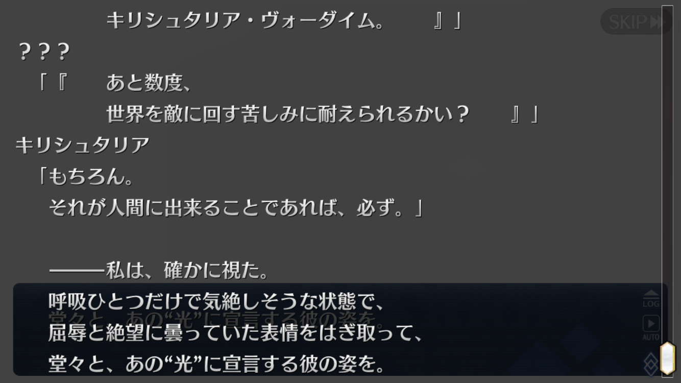 「有り得たかもしれない世界を救った」って意味で解釈してた発動したのはブリュンヒルデだけれどちゃかりキャスニキの使うとされる大神刻印(オホド・デウグ・オーディン)出てたな
