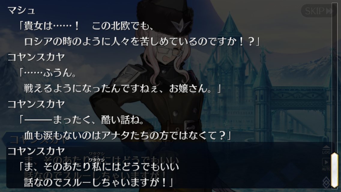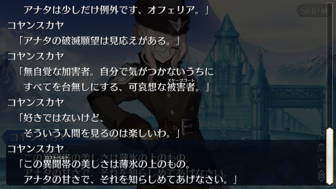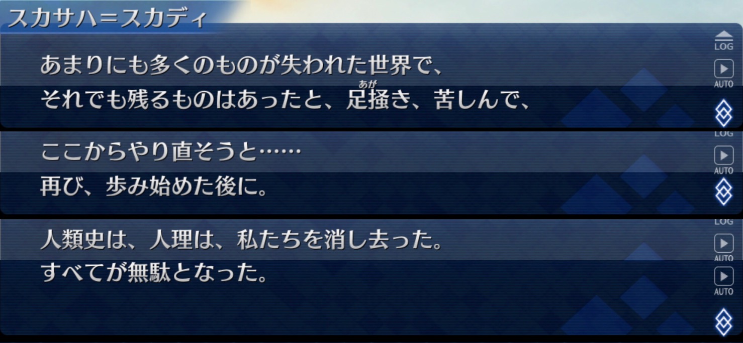 最初はクリプター達はそこに集ってたみたいだし振り返ってみると今のところカルデアのマスター相手に勝てた可能性が一番高かった異聞帯だと思う