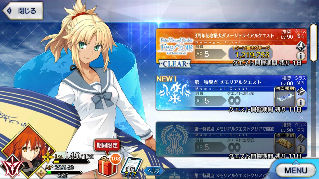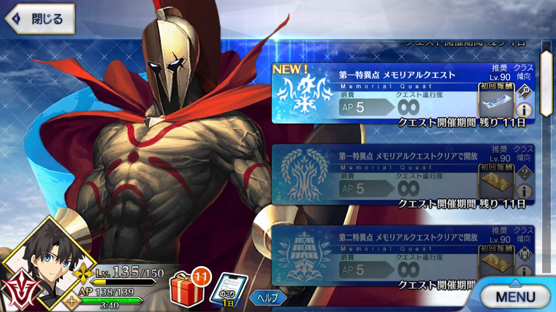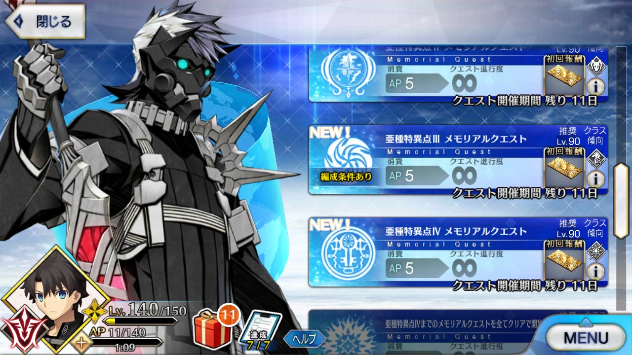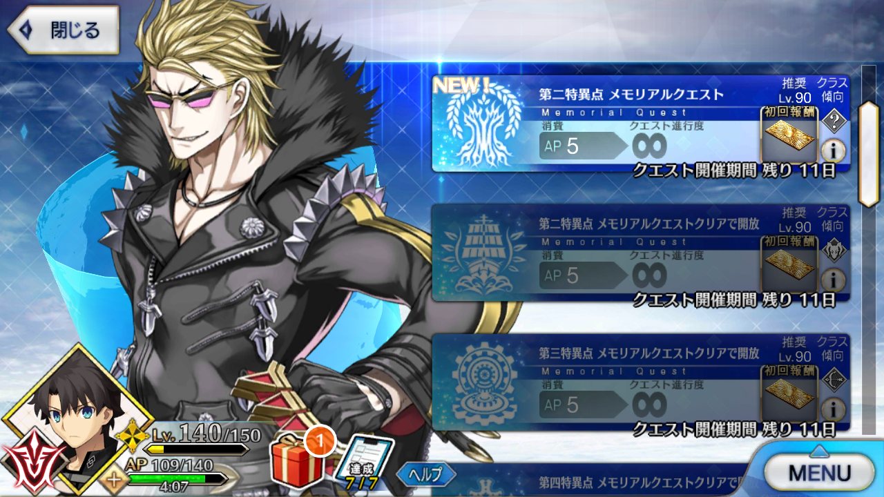 マスタースキルは“聖剣集う絢爛の城(ソード・キャメロット)”1000なら管理人をねぎらう