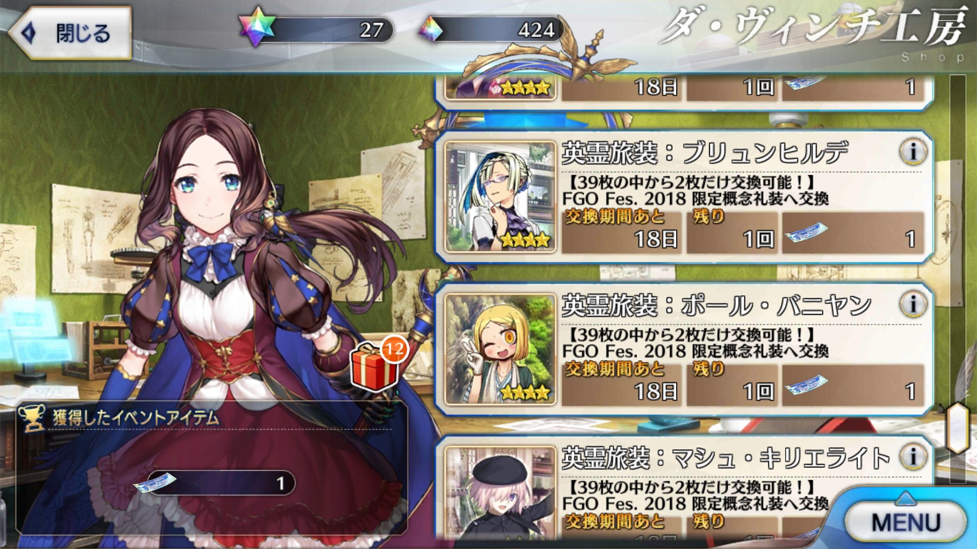 ほら、今日追加された英霊旅装の受け取りにダヴィンチ工房へ行ってたのさ