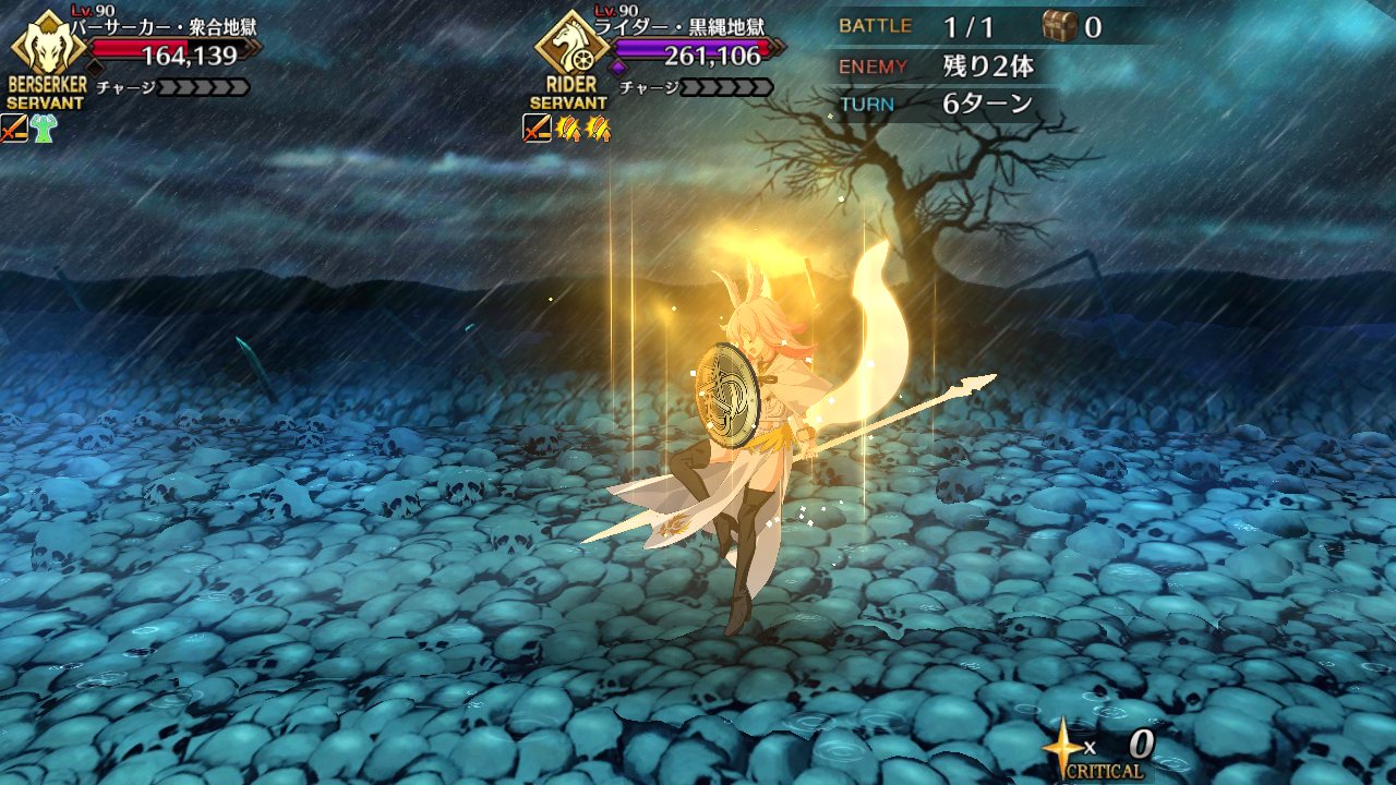 剣豪メモリアルクエストというかアレ、とにかくらいこうママに攻撃集中させて先に倒すのが最適解なのね(打点かなり高いし酒呑は最大2回だからどうにでもなるし)