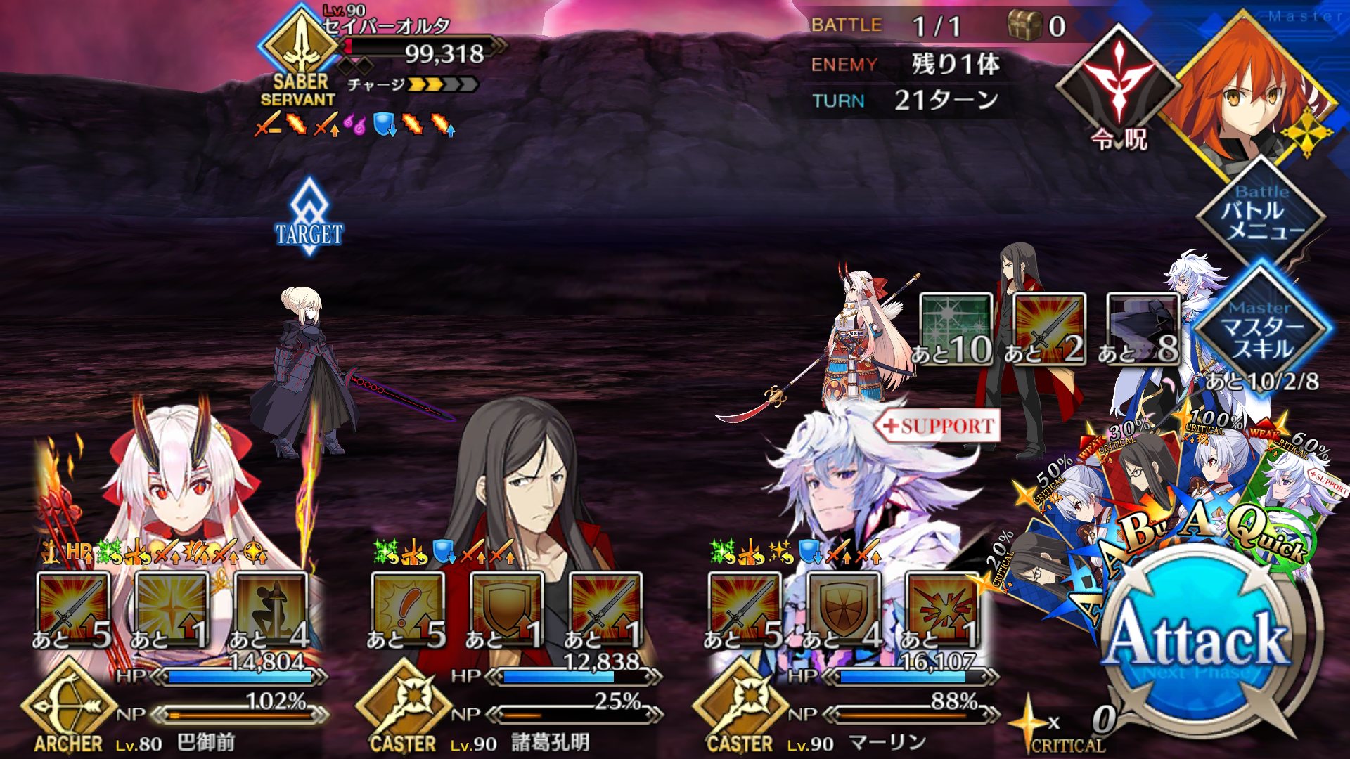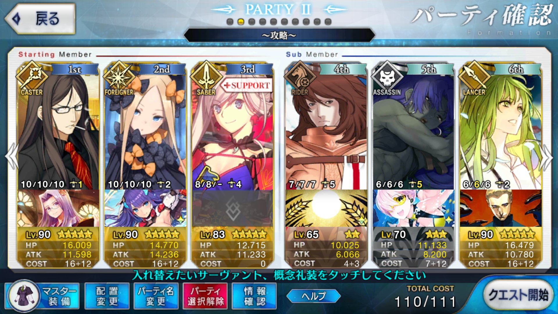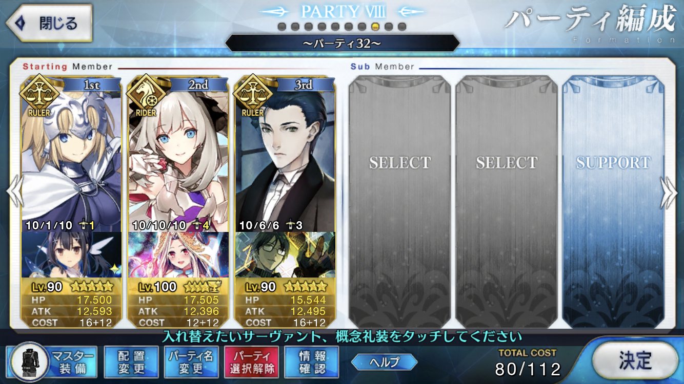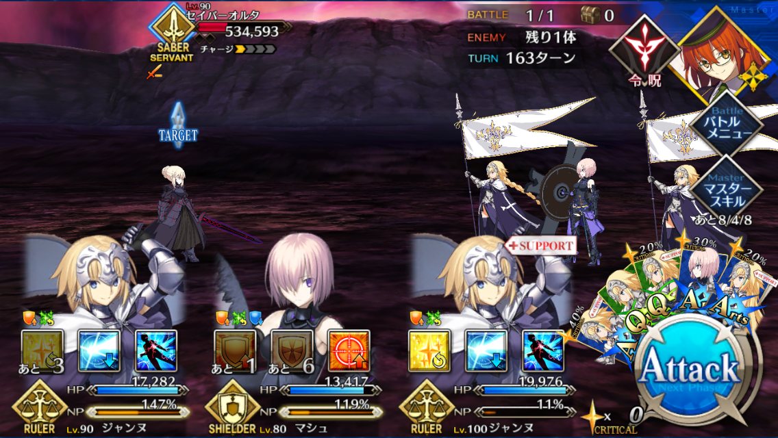 ジャンヌ入れるのは考えたけど、とりあえず最初に選んだメンバーでいけそうだったから押し通したよ>>891